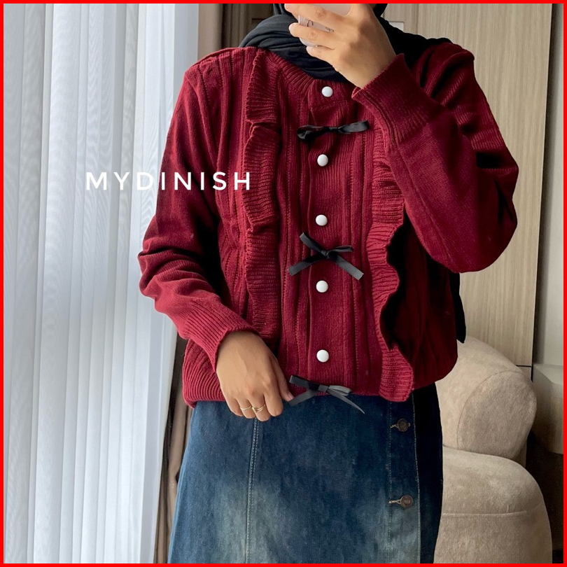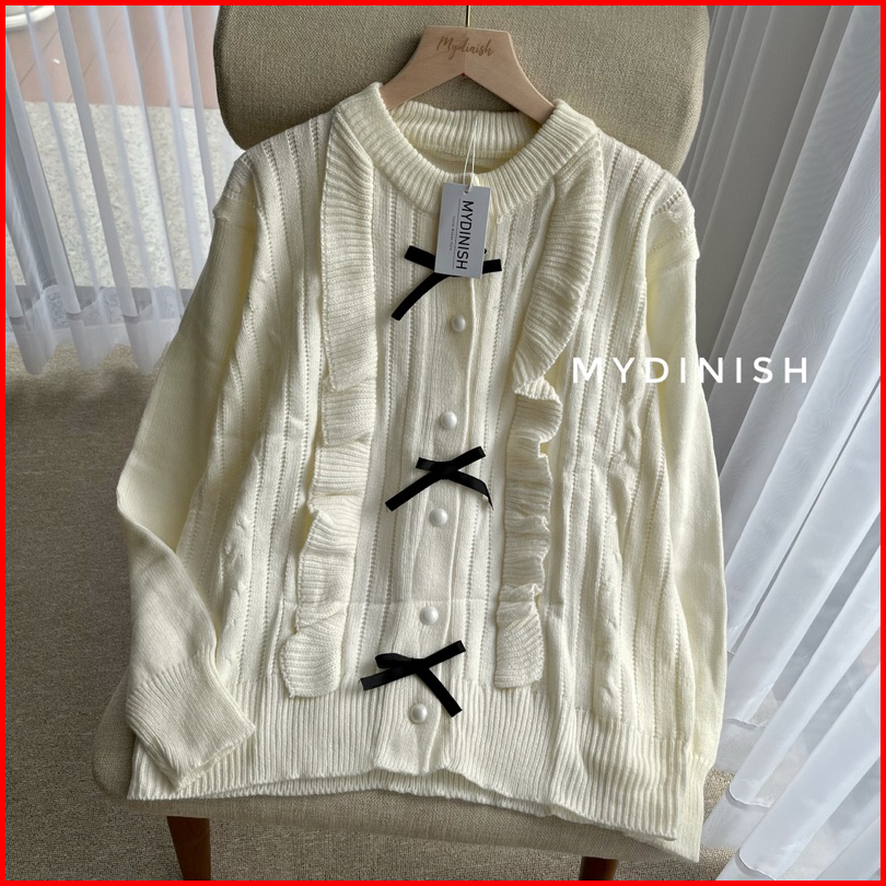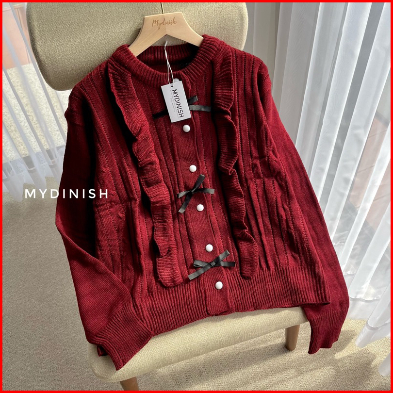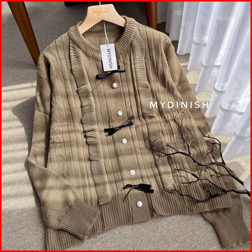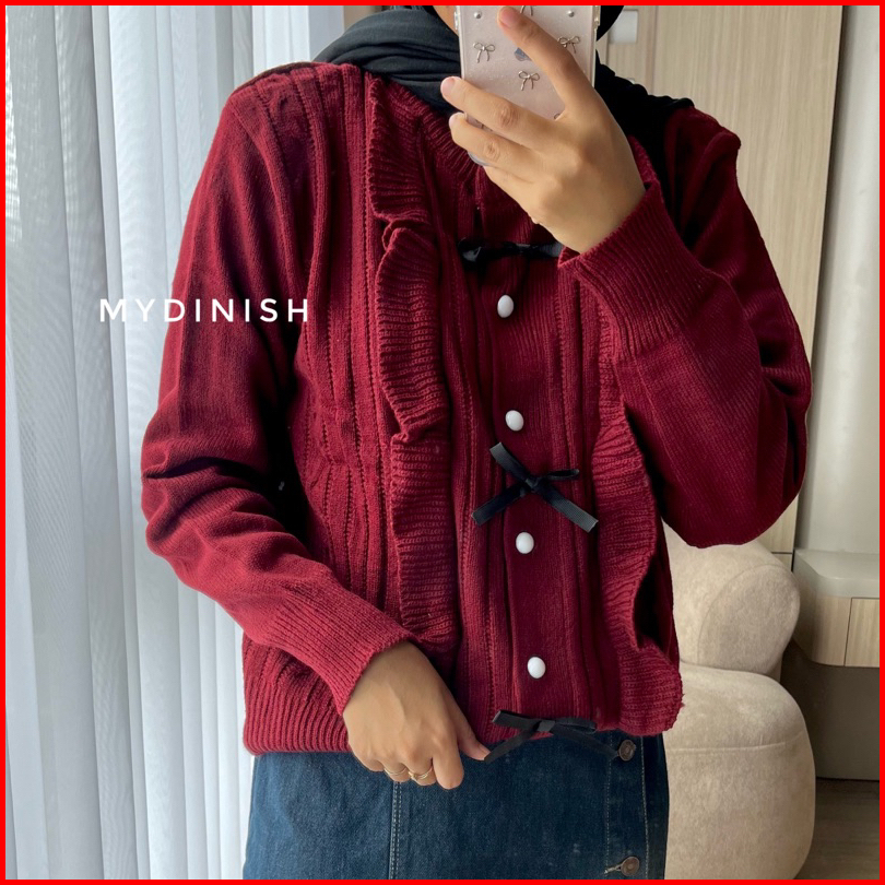 Hikana Ruffle Cardy - Cardigan Rajut Wanita Terbaru Motif Pita Korean Style