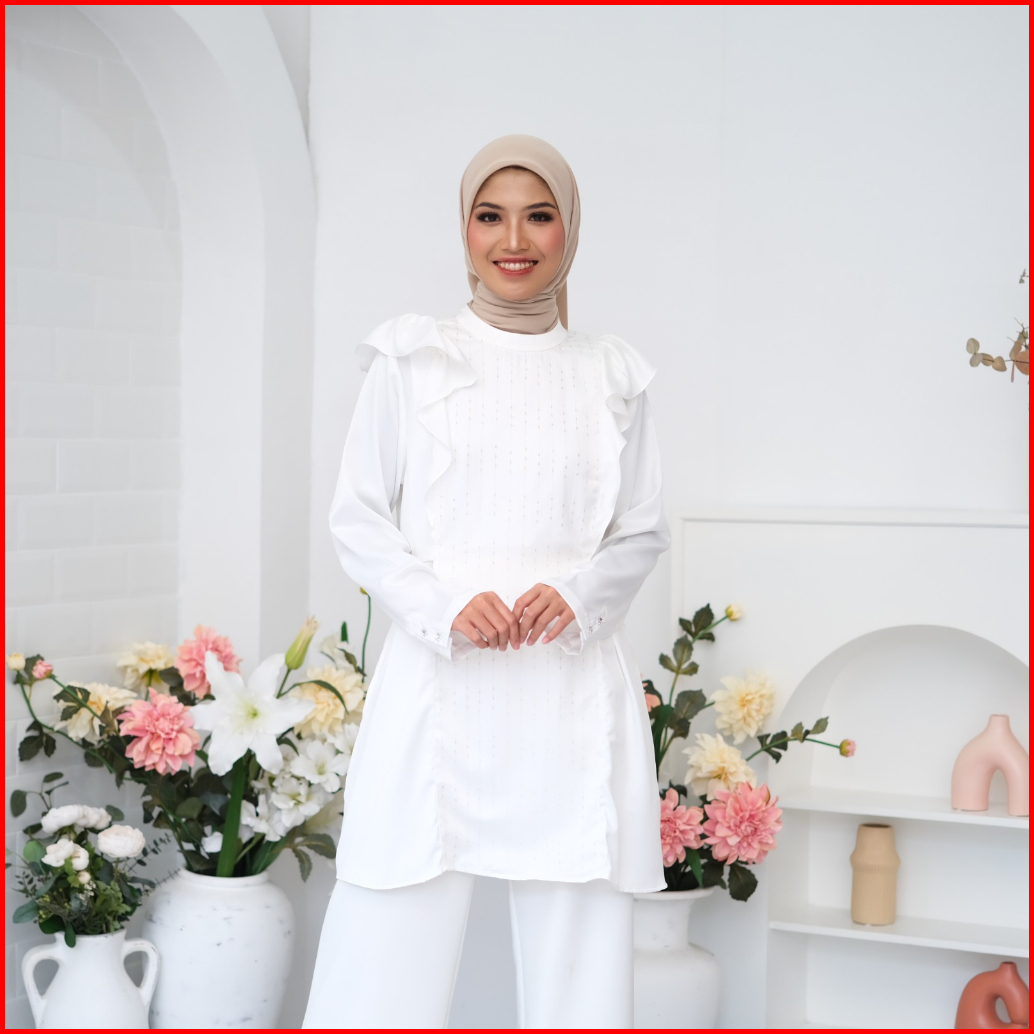 Zoya Romeria - Tunik Polos Wanita Wudhu Friendly - Bahan Sateen Lace
