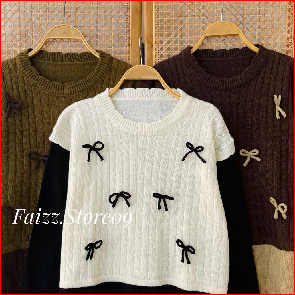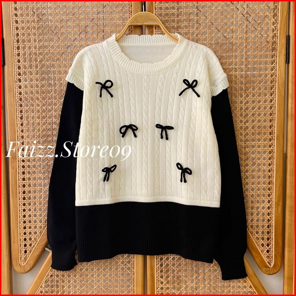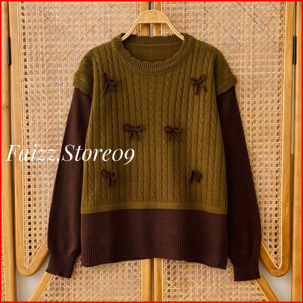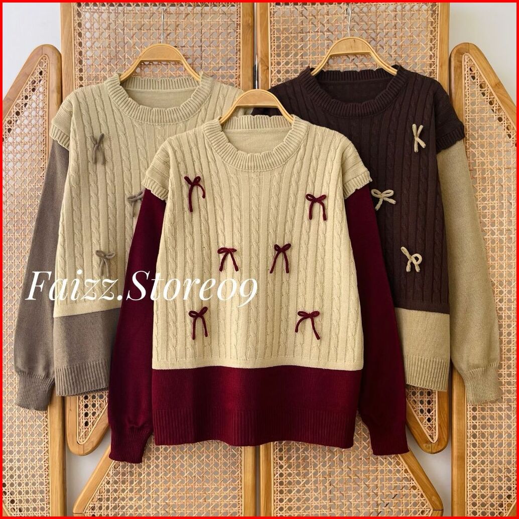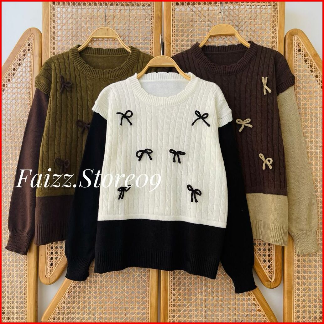 Sierra Blous Knits - Atasan Sweater Rajut Wanita Motif Pita Cable Lengan Panjang Kekinian Korean Style Premium