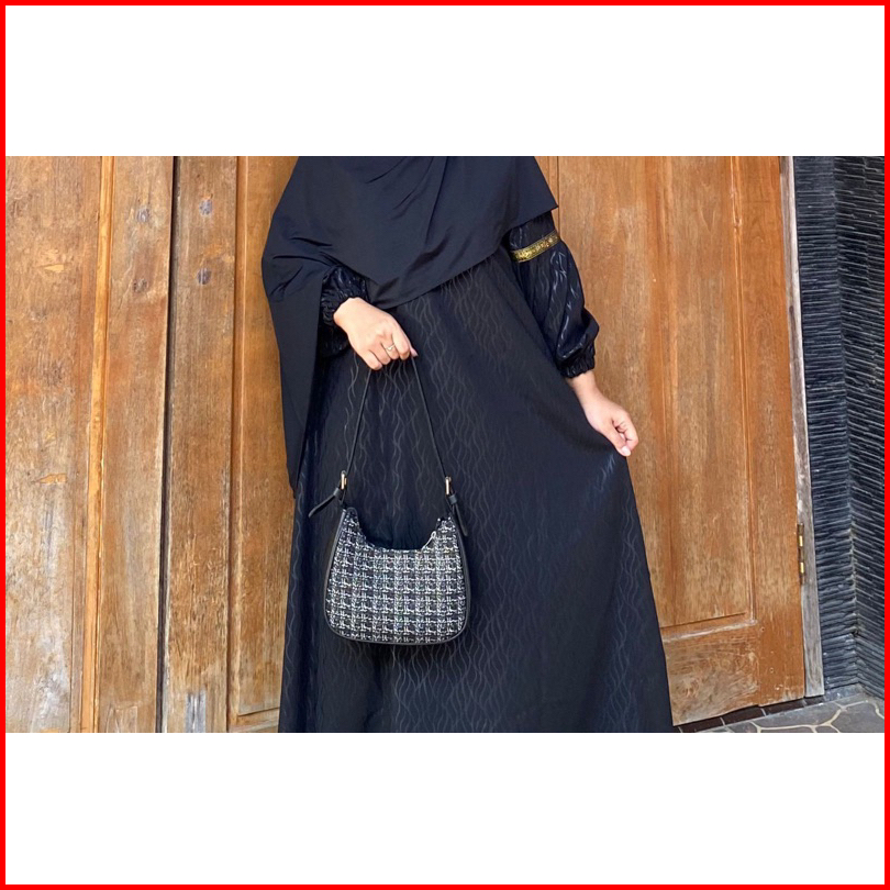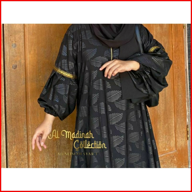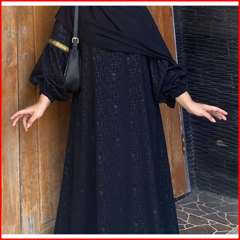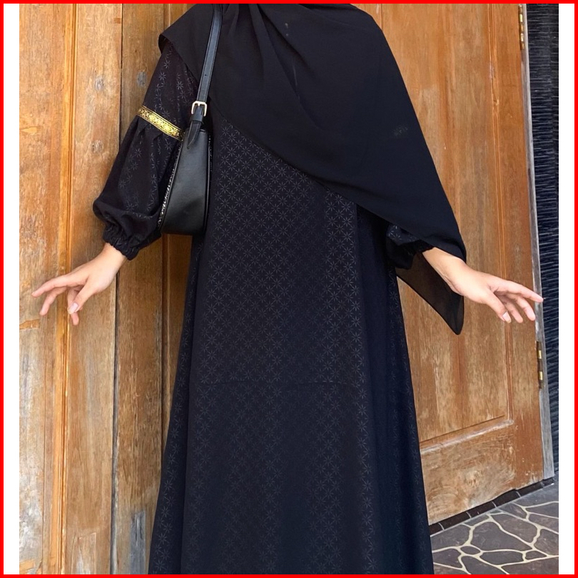 Abaya Shiva Abaya Embos Lengan Balon Temboro Wolfis Hitam Full Motif Gamis Muslim Wanita