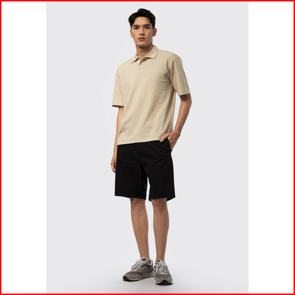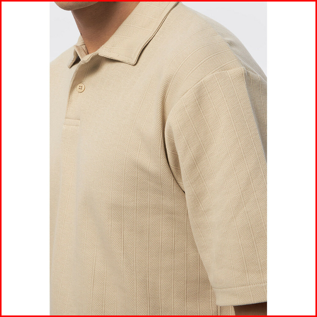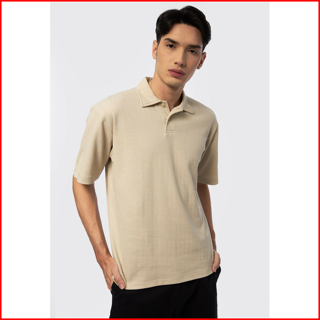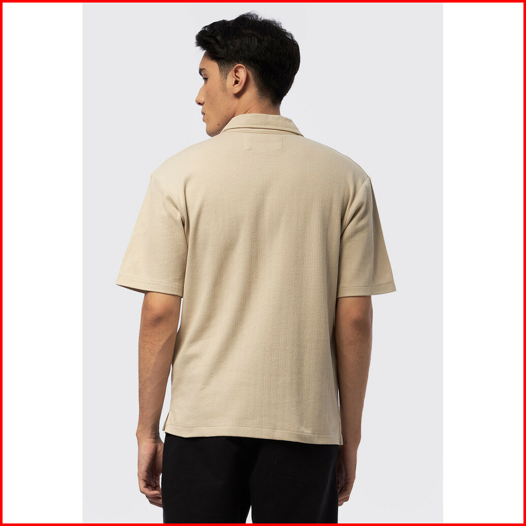 Executive Short Sleeve Textured Polo Shirt Beige