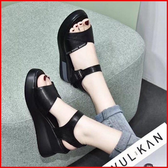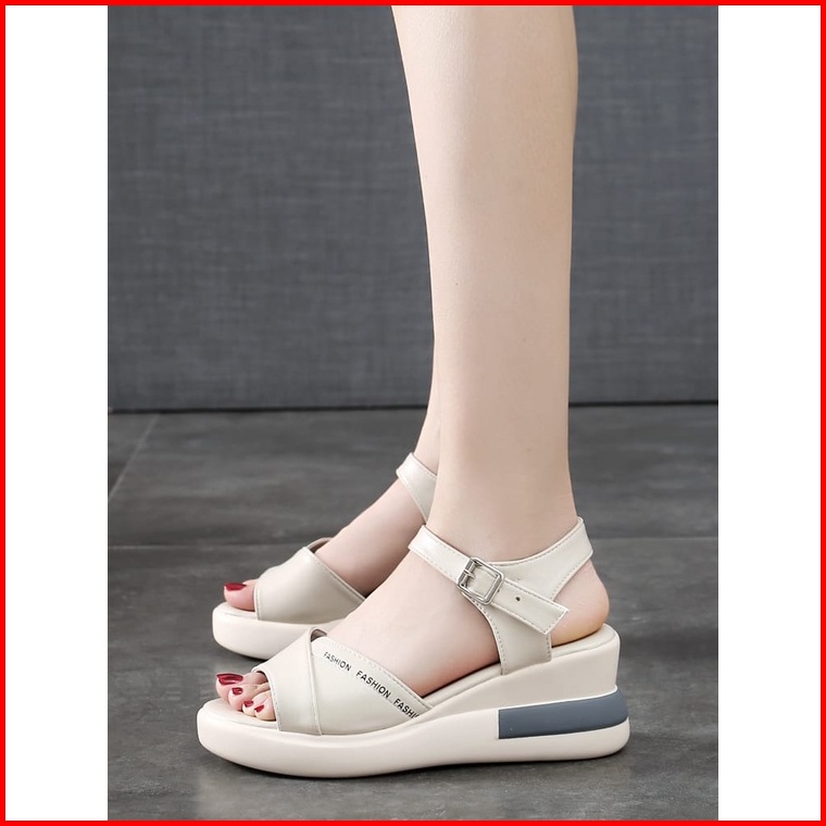 Sn721 - Sandal Wedges Wanita Kulit Sintetis Fashion Import