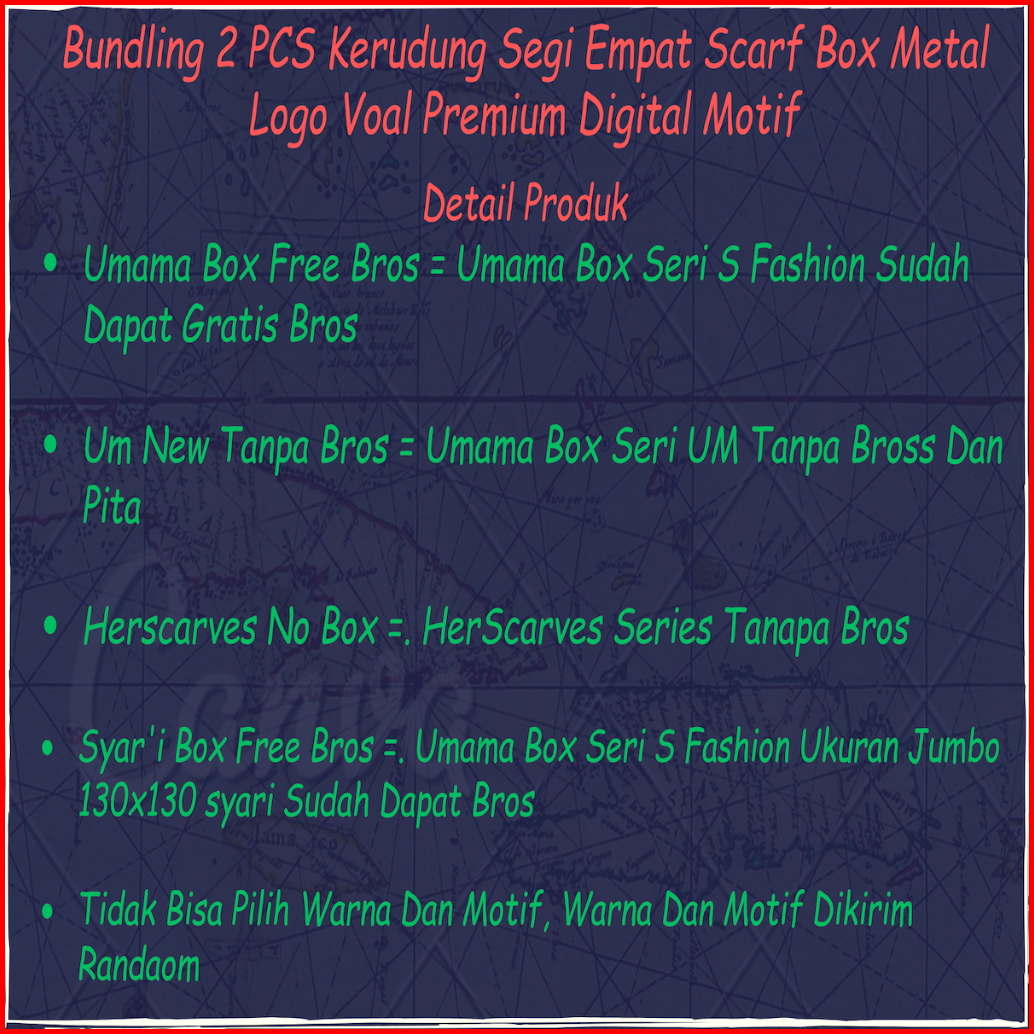 Bundling 2 Pcs Kerudung Segi Empat Scarf Box Metal Logo Voal Premium Digital Motif
