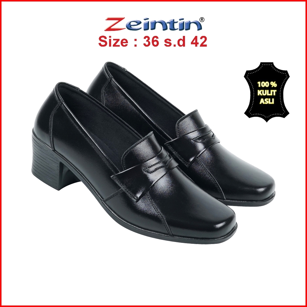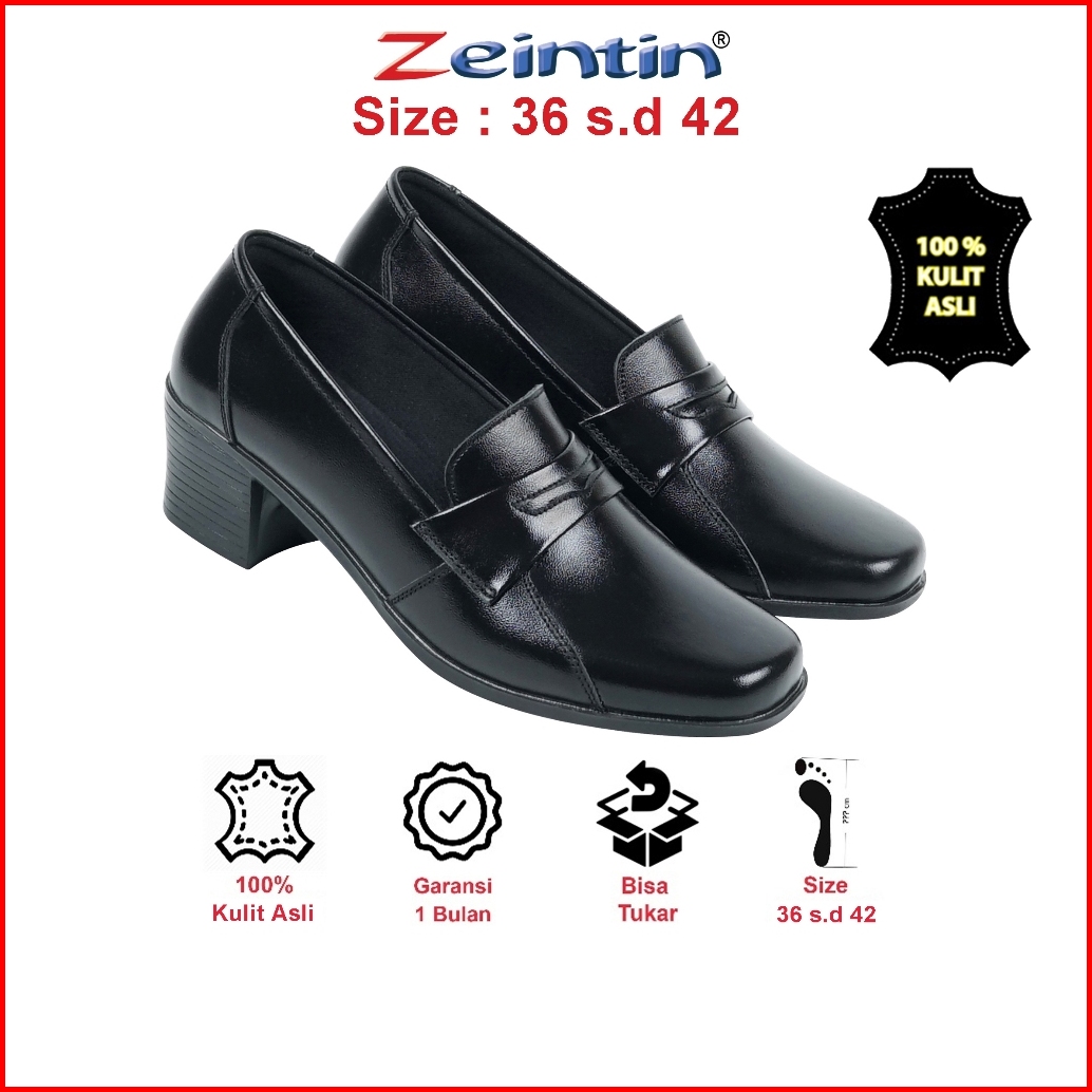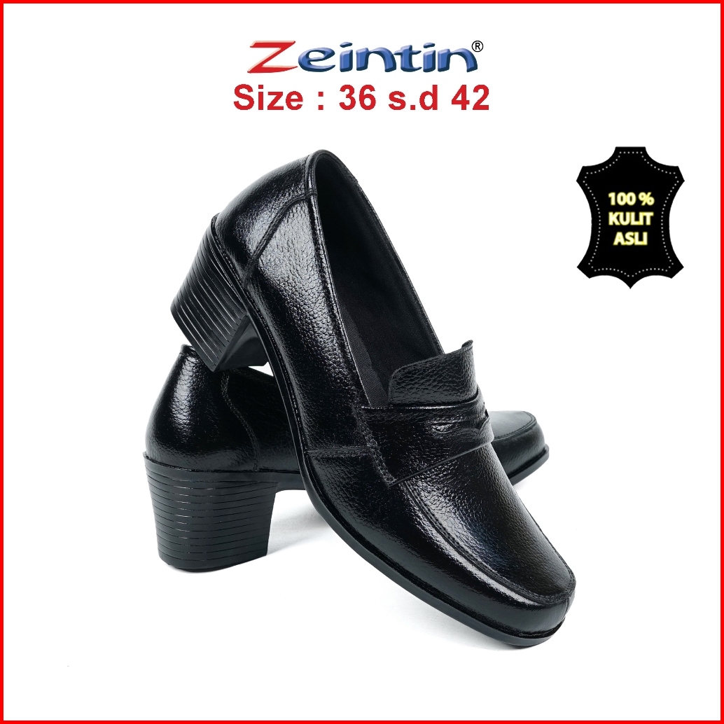 Zeintin - Sepatu Wanita Kantor Pantofel Wanita Bahan Kulit Formal Kasual Zeintin Full Hitam Bj