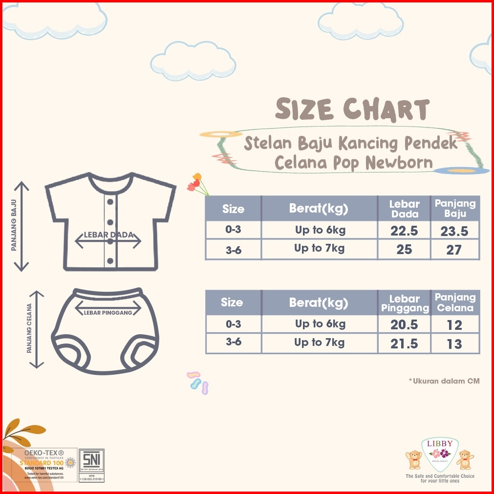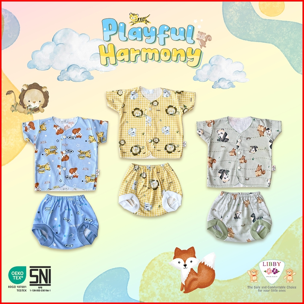 Libby Setelan Piyama Anak Laki Laki Perempuan Baju Pendek Celana Pop Newborn Bayi Motif Unisex 1stel Fresh Dream Playful