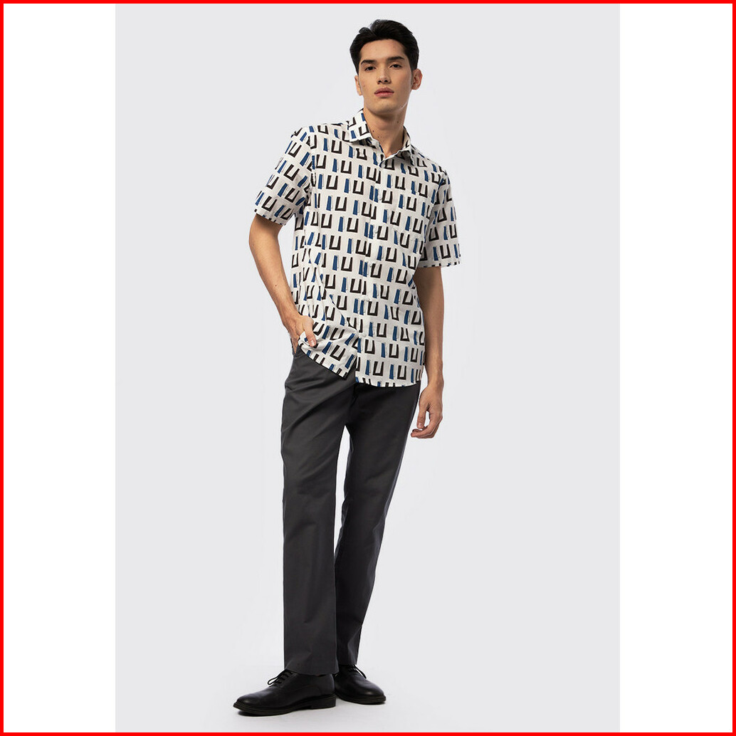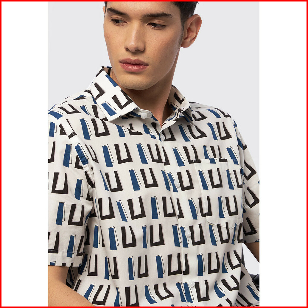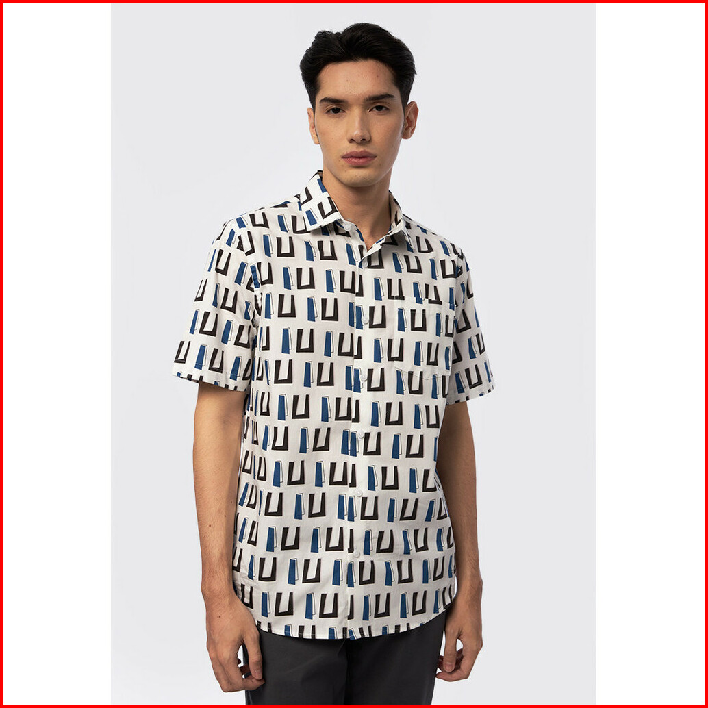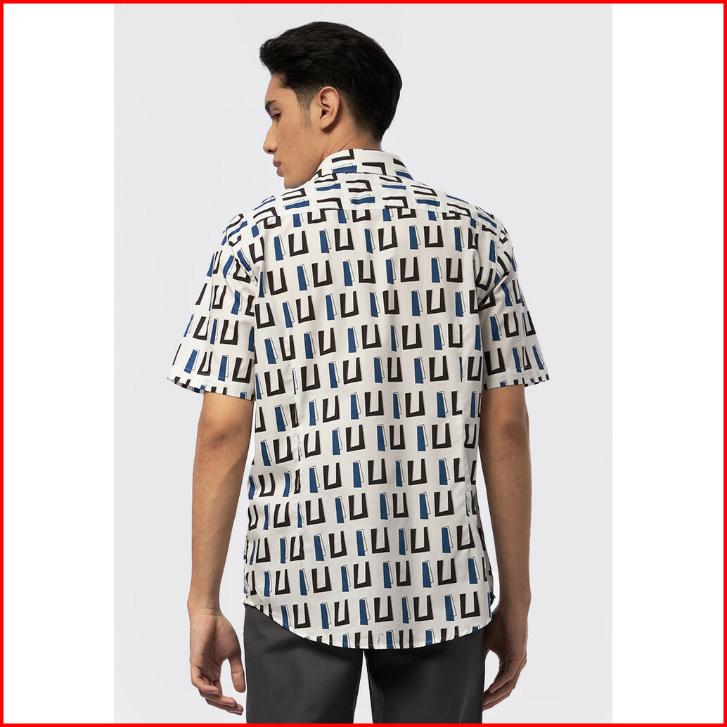 Executive Regular Fit Short Sleeve Printed Shirt White