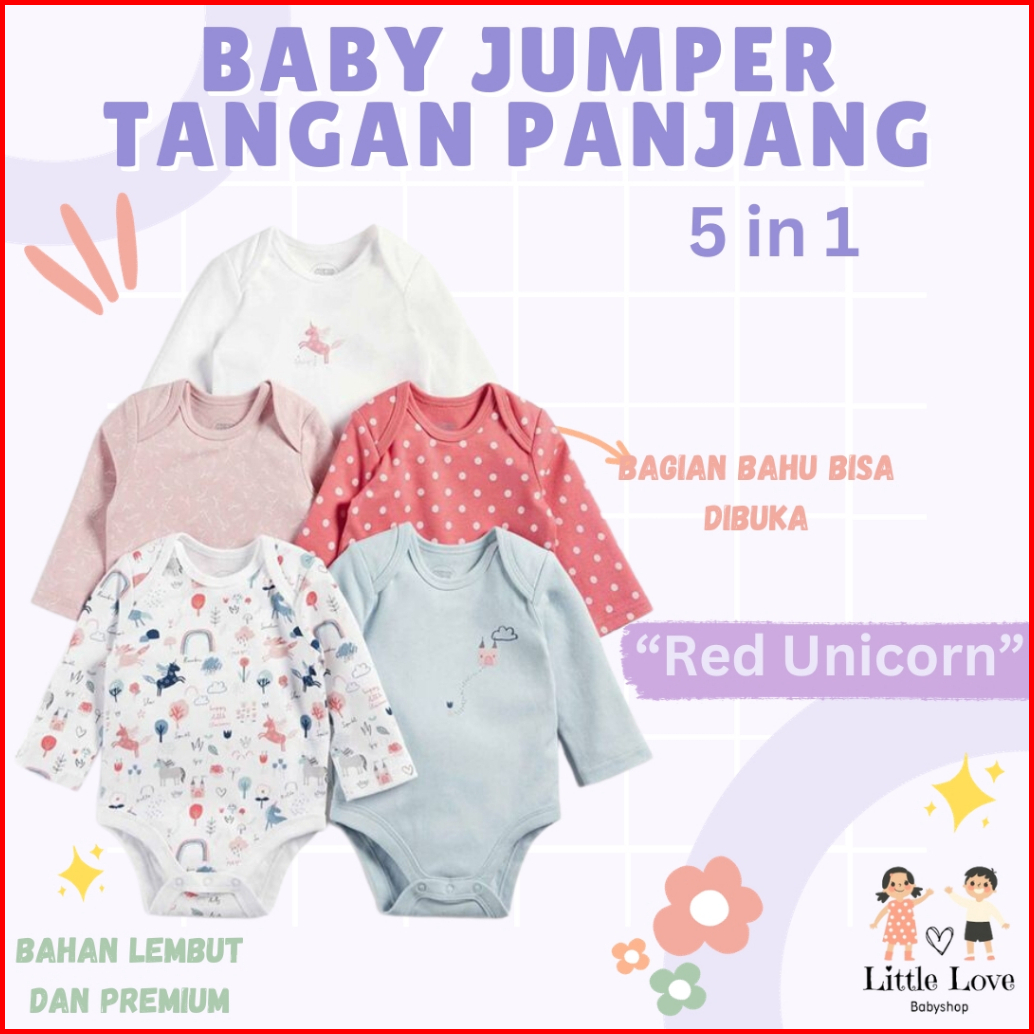 Mamas Papas Premium Baby Bodysuit 5 Pcs Set Boy Dan Girl Long Sleeve