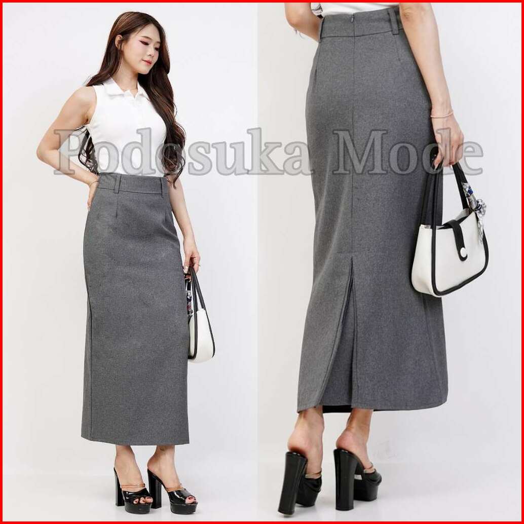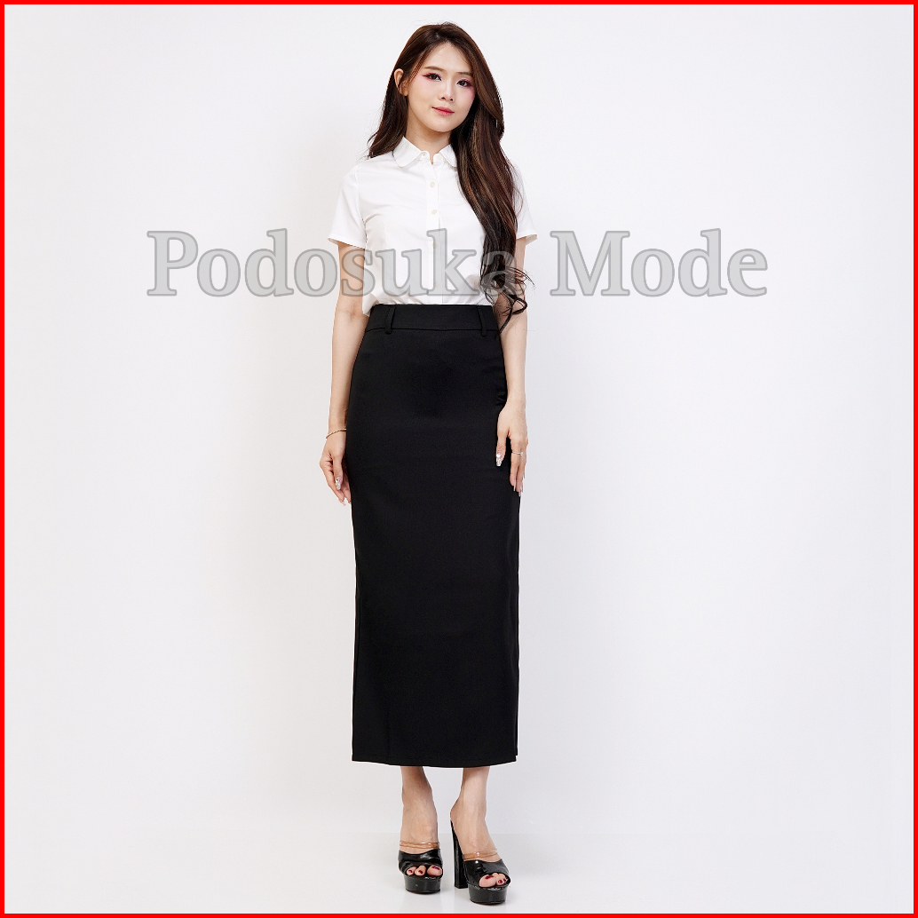 Rok Kerja Wanita Panjang Span Kantor Rempel Belakang Premium
