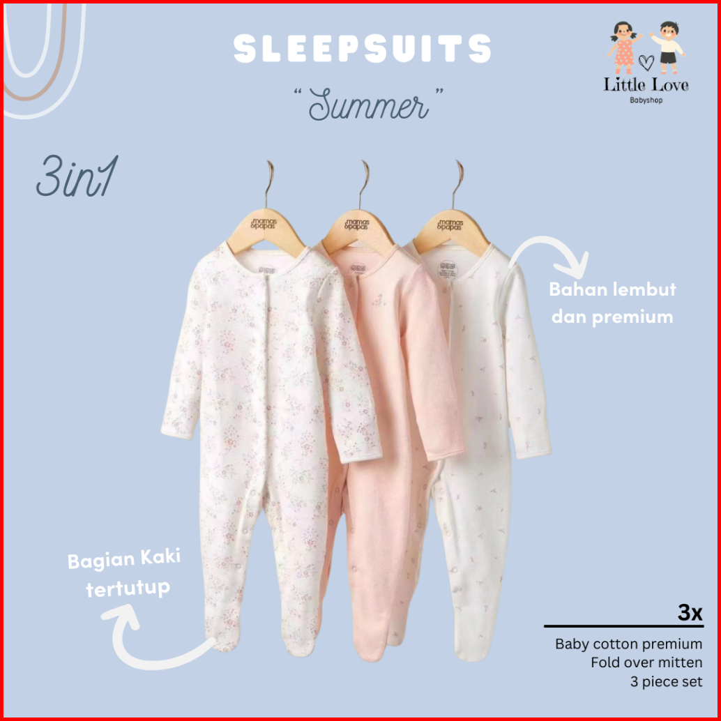 Sleepsuit Baju Tidur Mamas Papas 3in1 Piyama Bayi Premium Perempuan