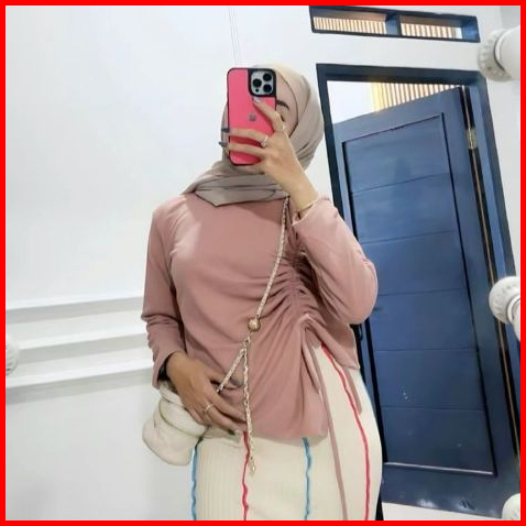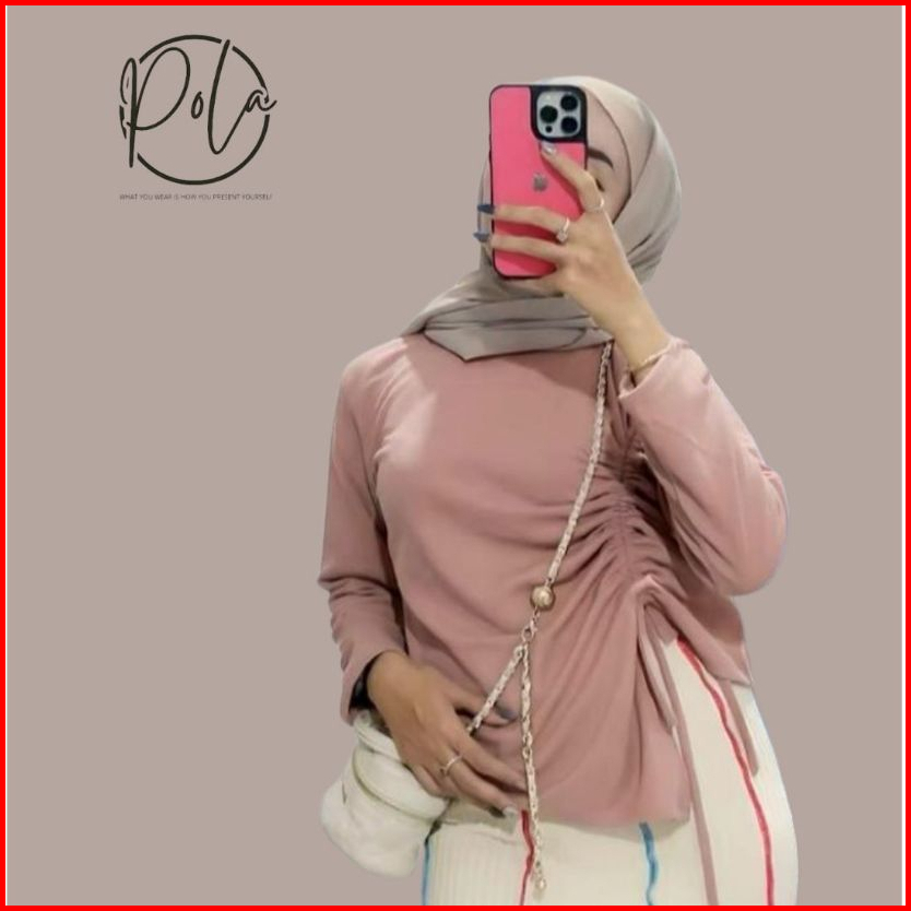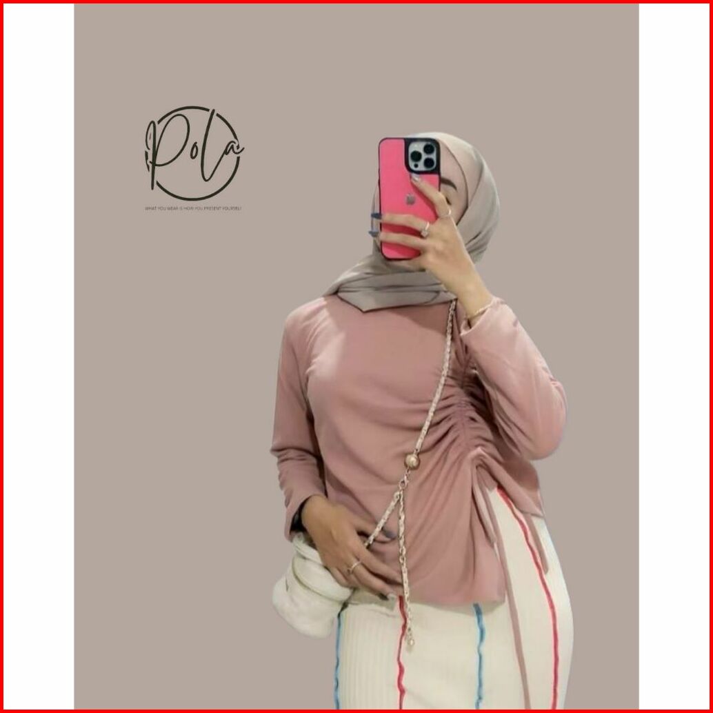Pola Wear Glenca Top Blouse Wanita Serut Depan Rib Knit
