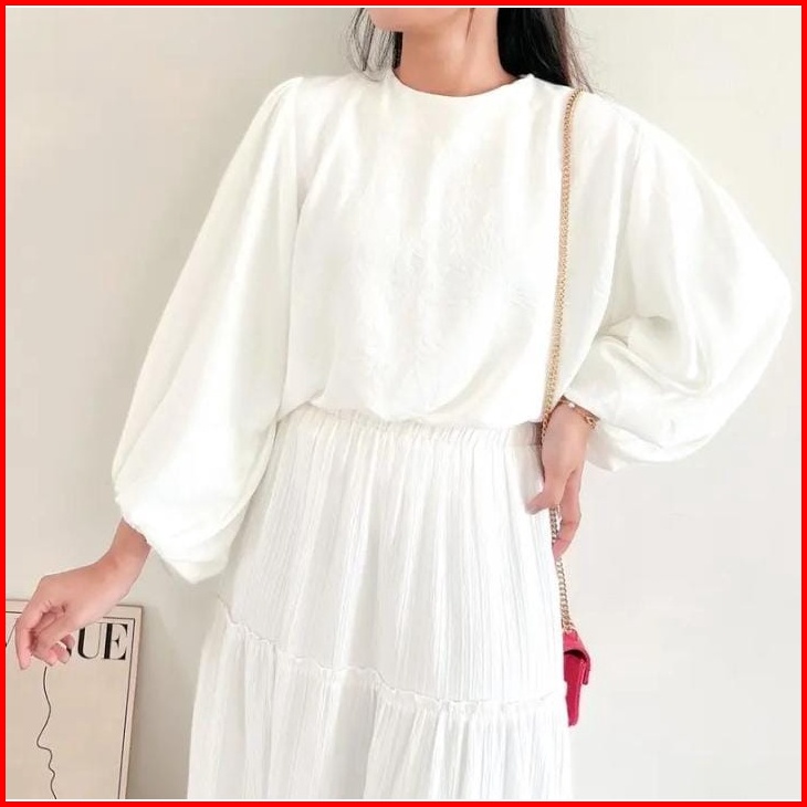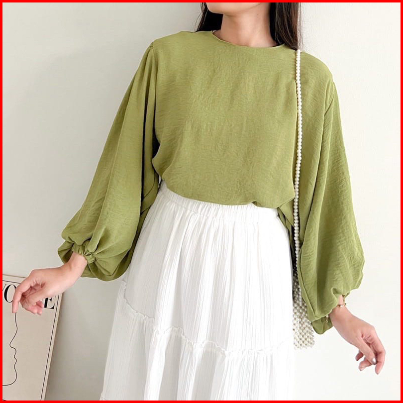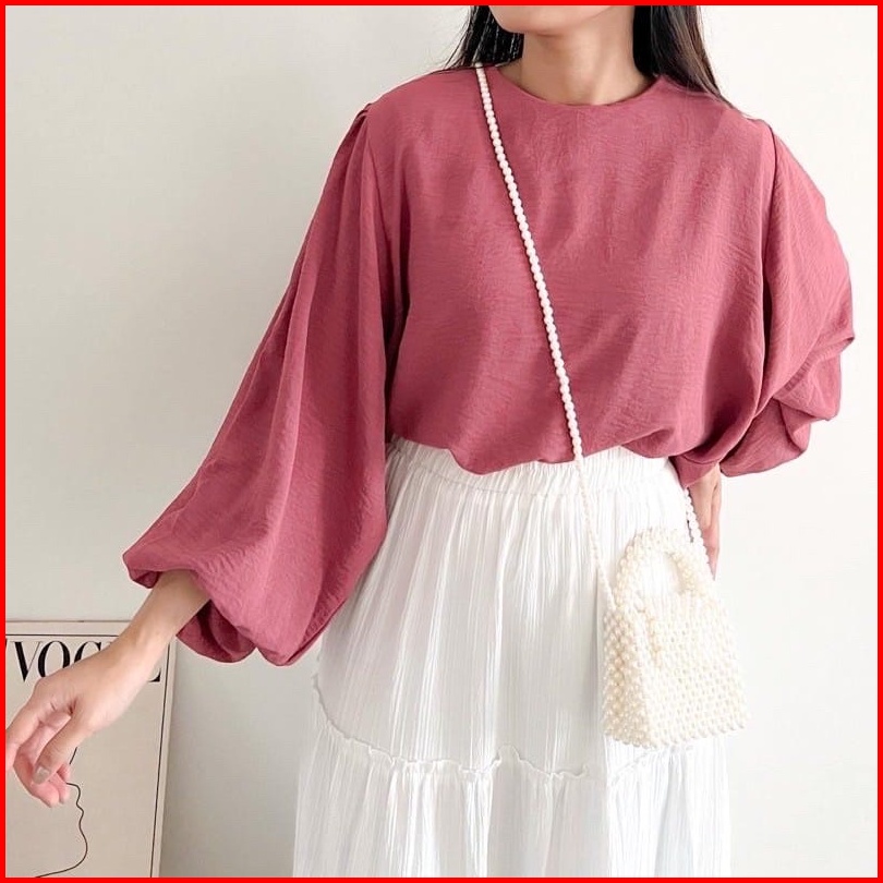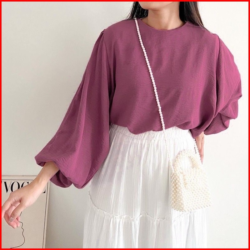 Pola Wear Mika Blouse Atasan Oversize Wanita Casual Lengan Balon Karet