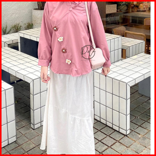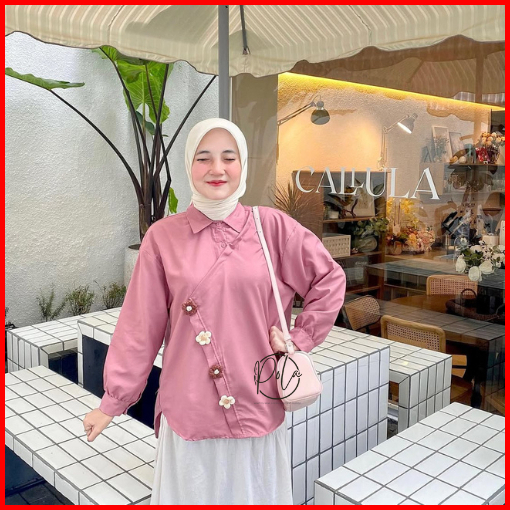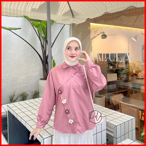 Pola Wear Gia Atasan Blouse Korean Style Kemeja Cute Bunga 3d Daily Look