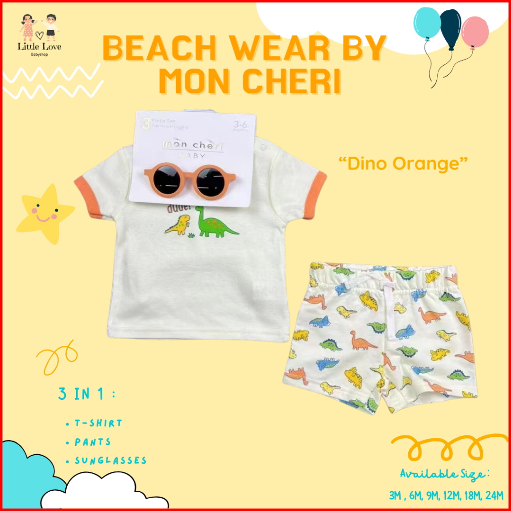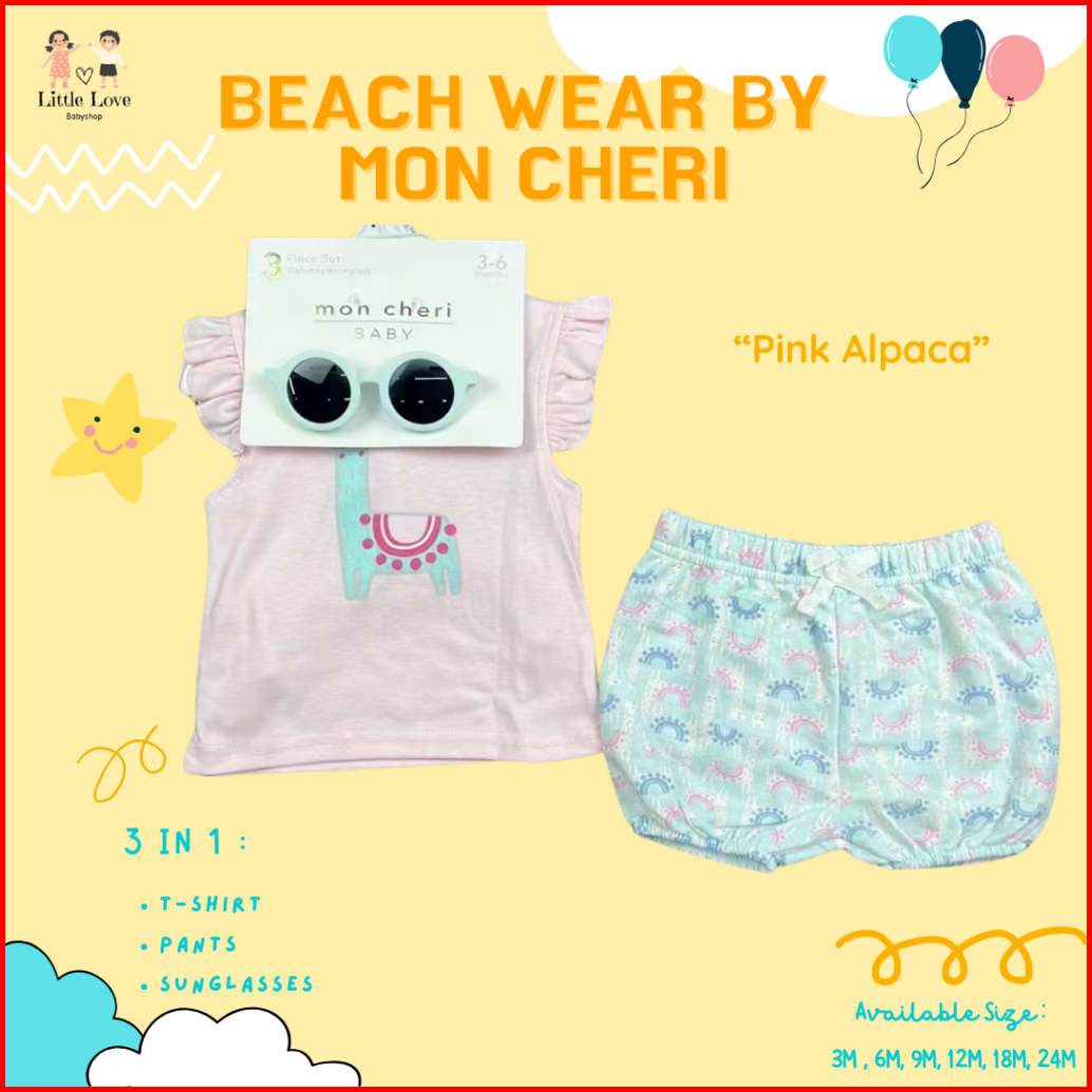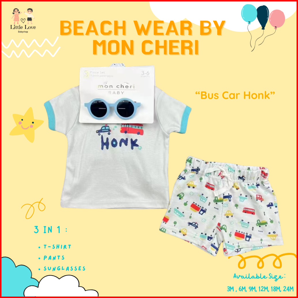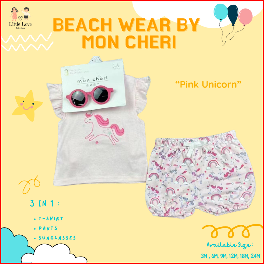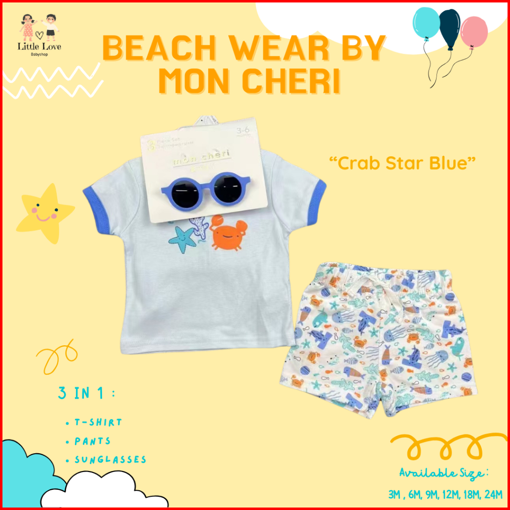 Little Love Baby Set 3in1 Baju Bayi Setelan Lengan Pendek 3in1 Kacamata Bayi Gift Set Baby Beach Wear Setelan Baju Panta