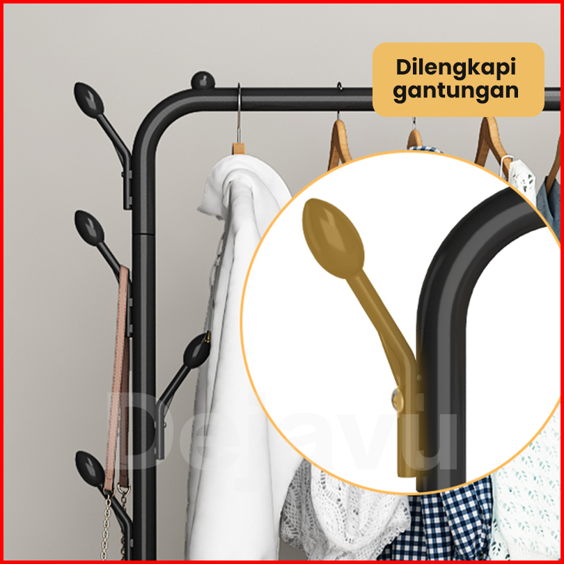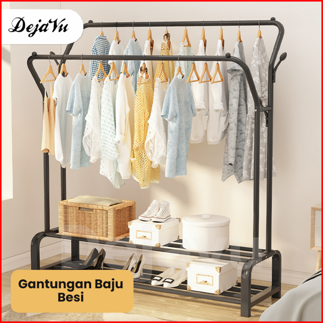 Dejavu Rak Gantungan Baju Besi Stand Hanger Jemuran Pakaian Single Double Tempat Gantung Baju Stainless Mulig Hsh133