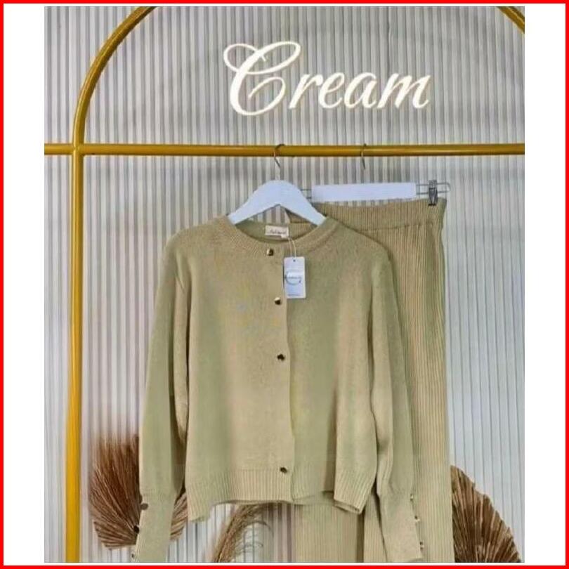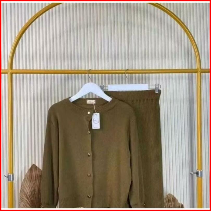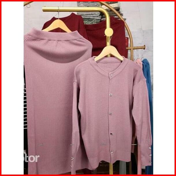 Onset Rajut Tarla Cardigan Dan Rok Span Rajut Wanita Premium