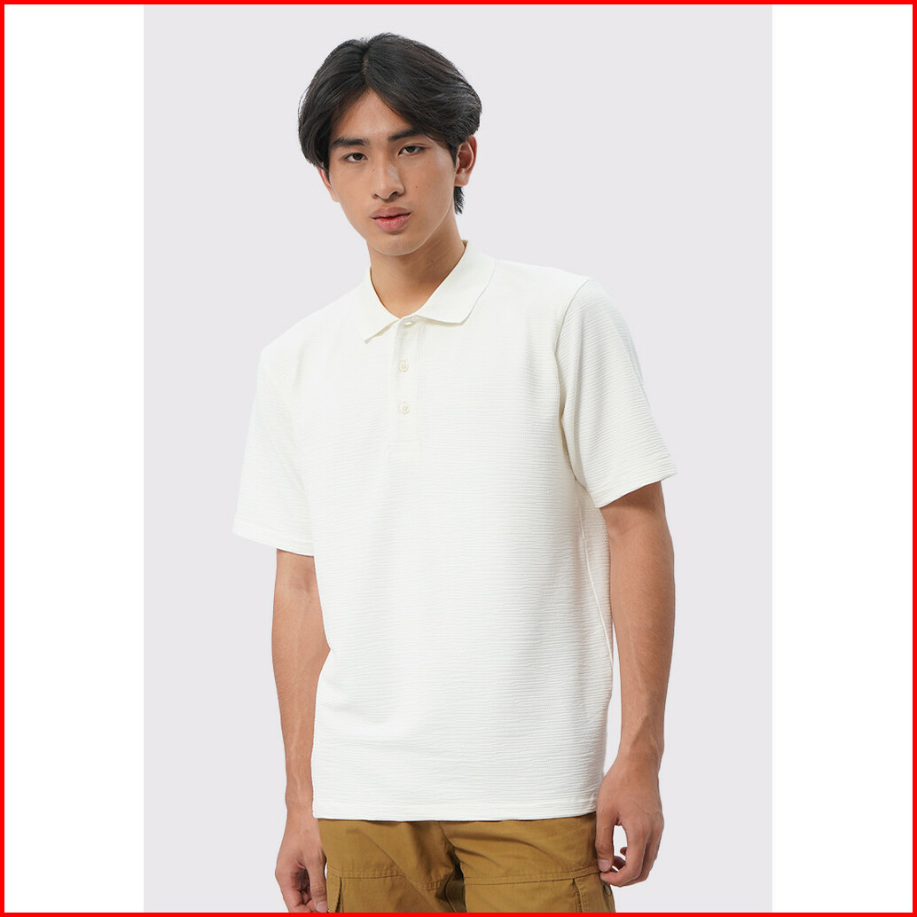 Executive Short Sleeve Textured Polo Shirt Ecru