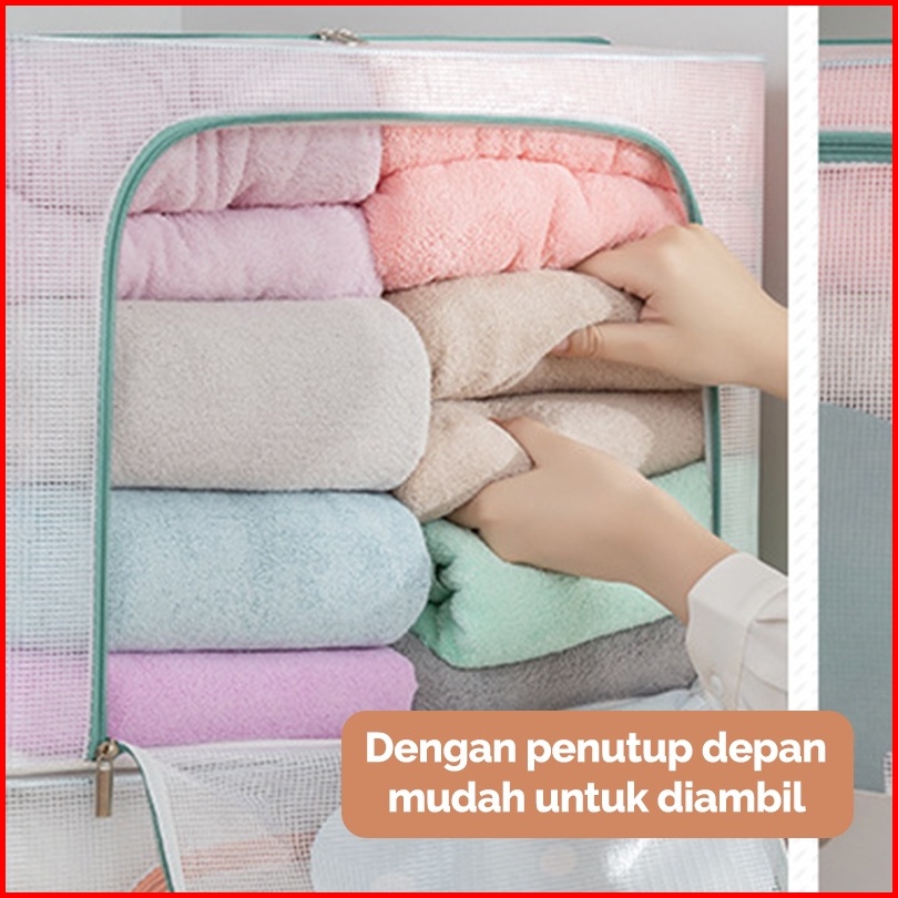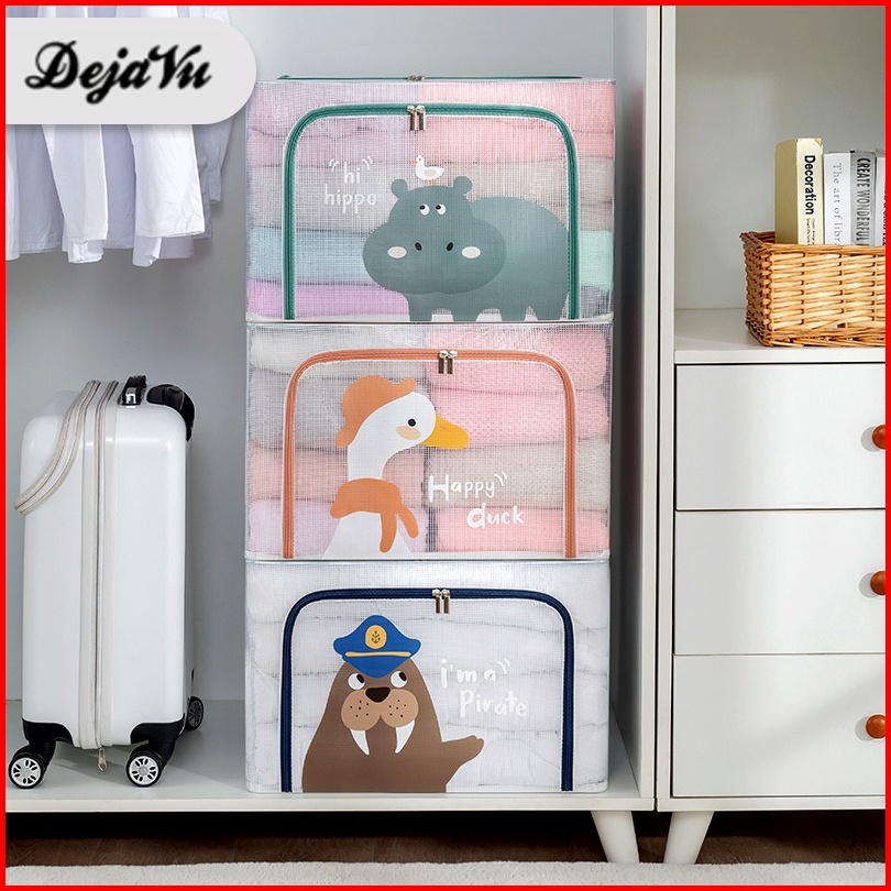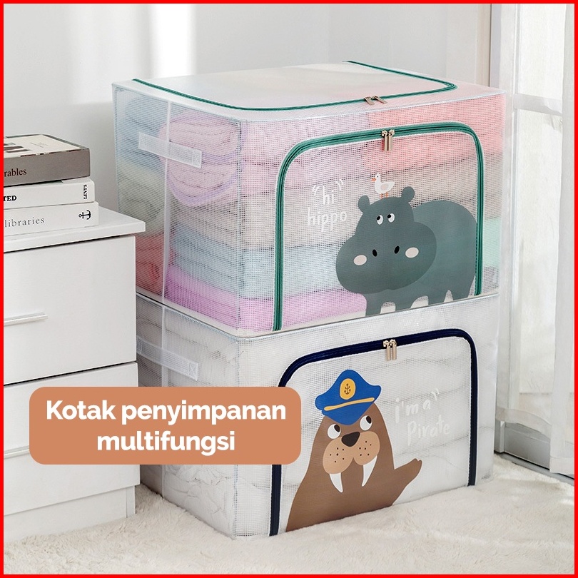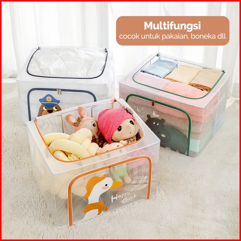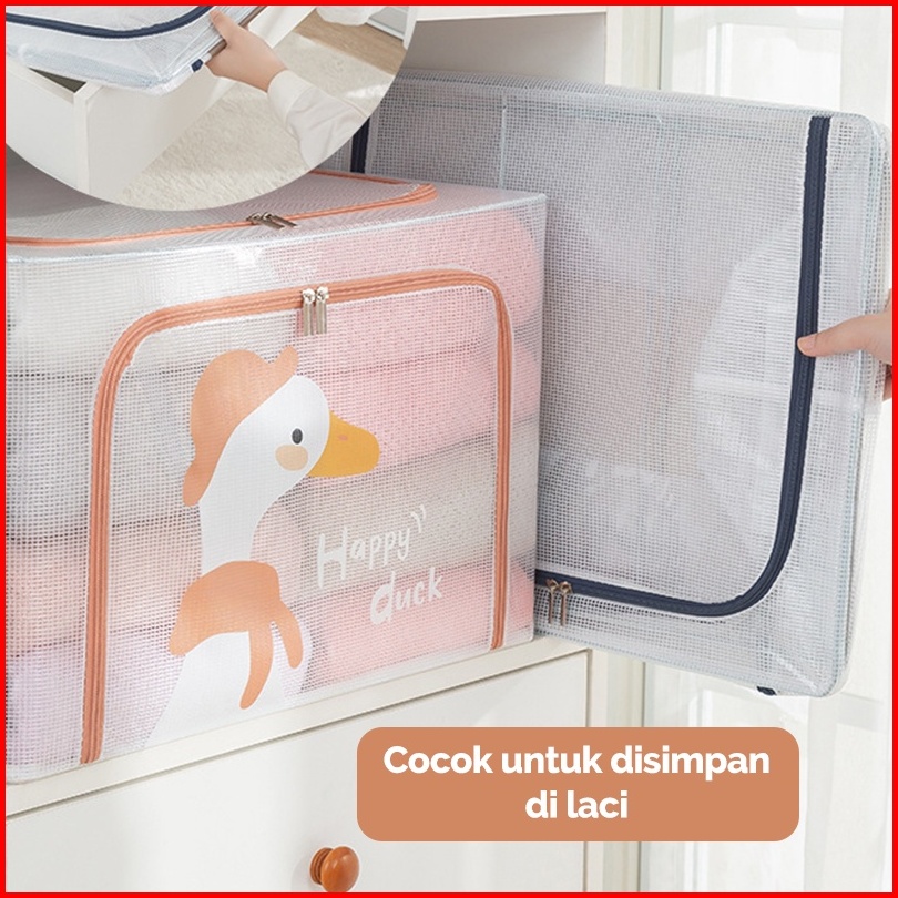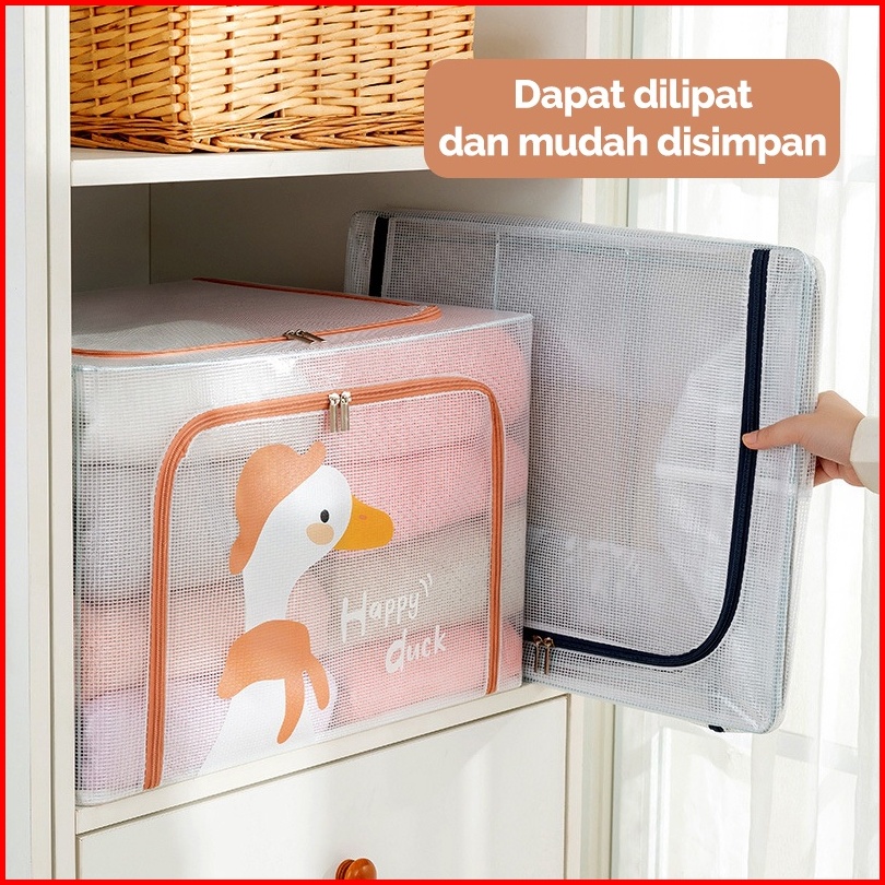 Dejavu Storage Box Transparan Lipat 66 Liter Transparan Kotak Organizer Besar Tempat Penyimpanan Serbaguna Double Zipper