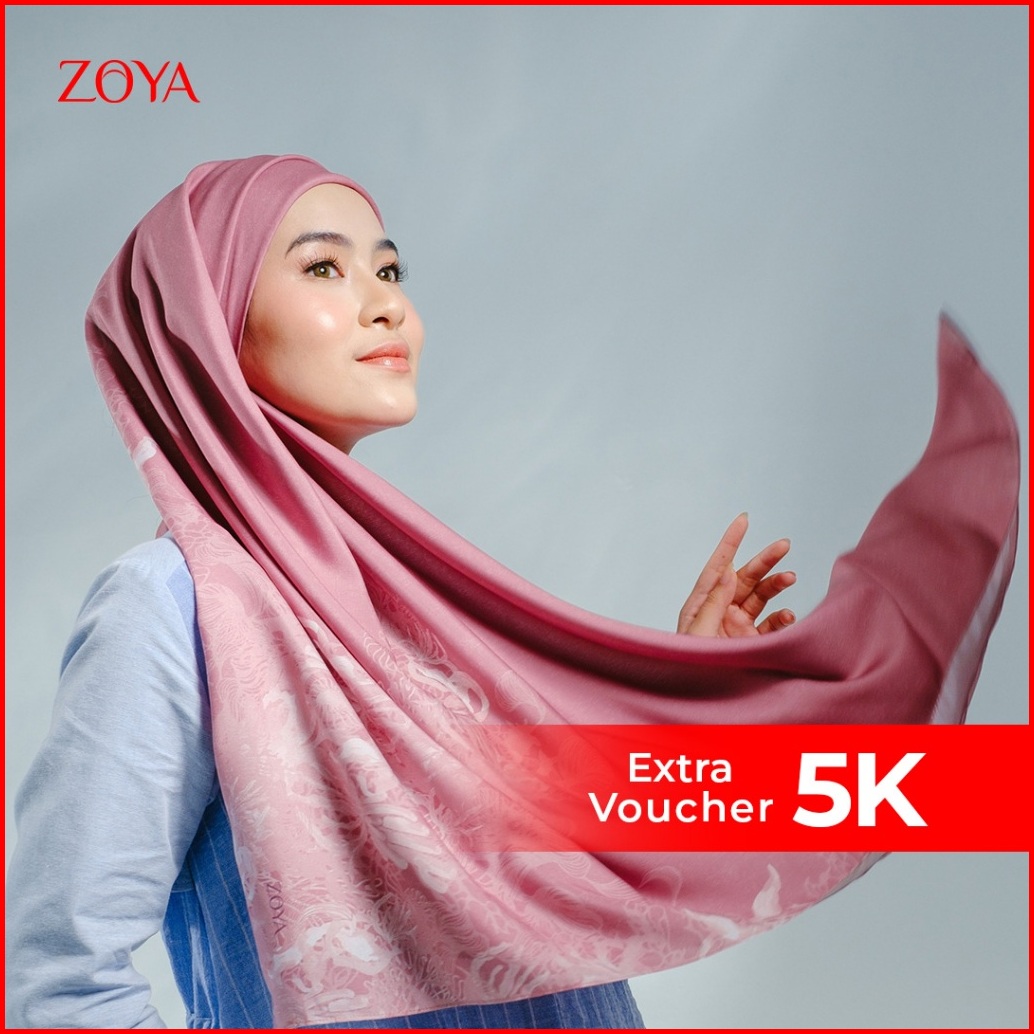 Zoya - Amami Scarf - Kerudung Hijab Segi Empat Motif - Pouch Ziplock