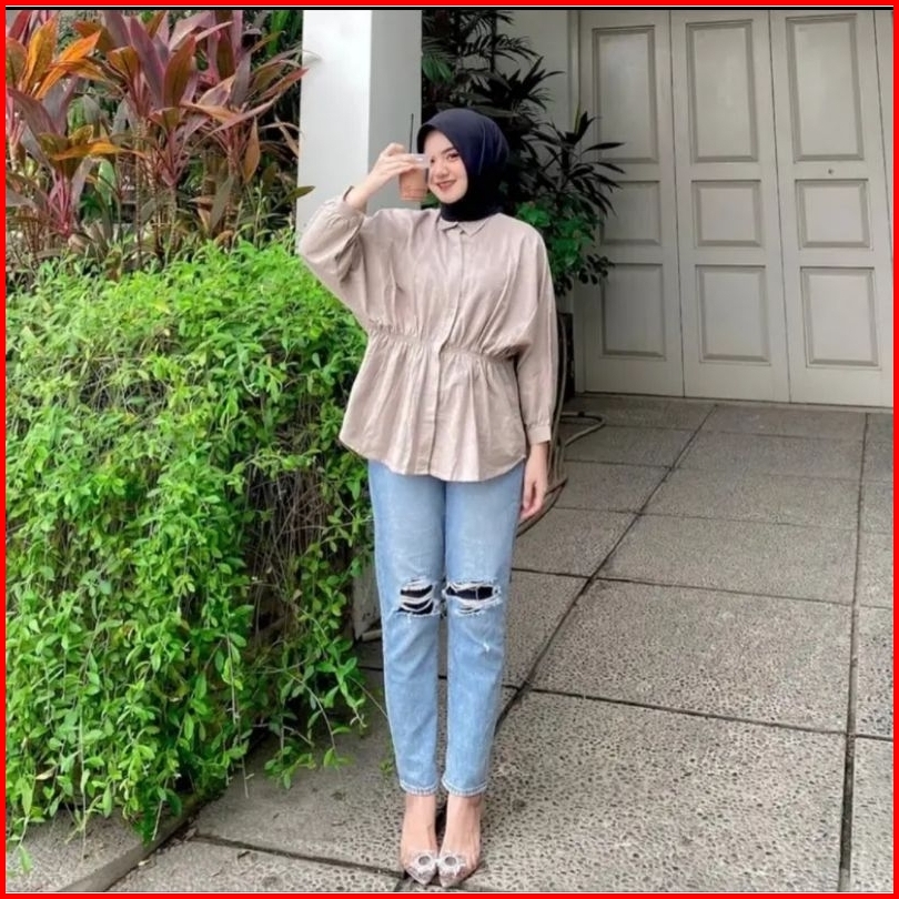 Alya Shirt- Blouse Linen Kerut Depan-atasan Wanita
