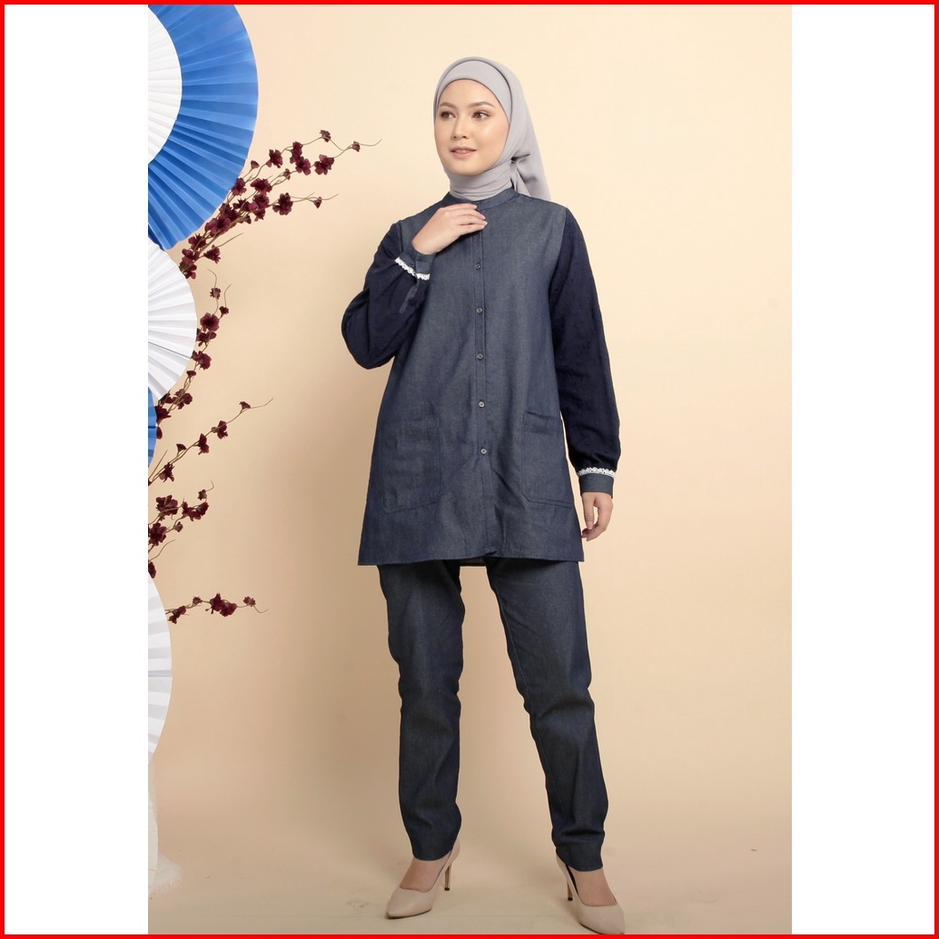 Zoya Anchi Tunik - Atasan Polos Wanita Wudhu Busui Friendly - Bahan Denim