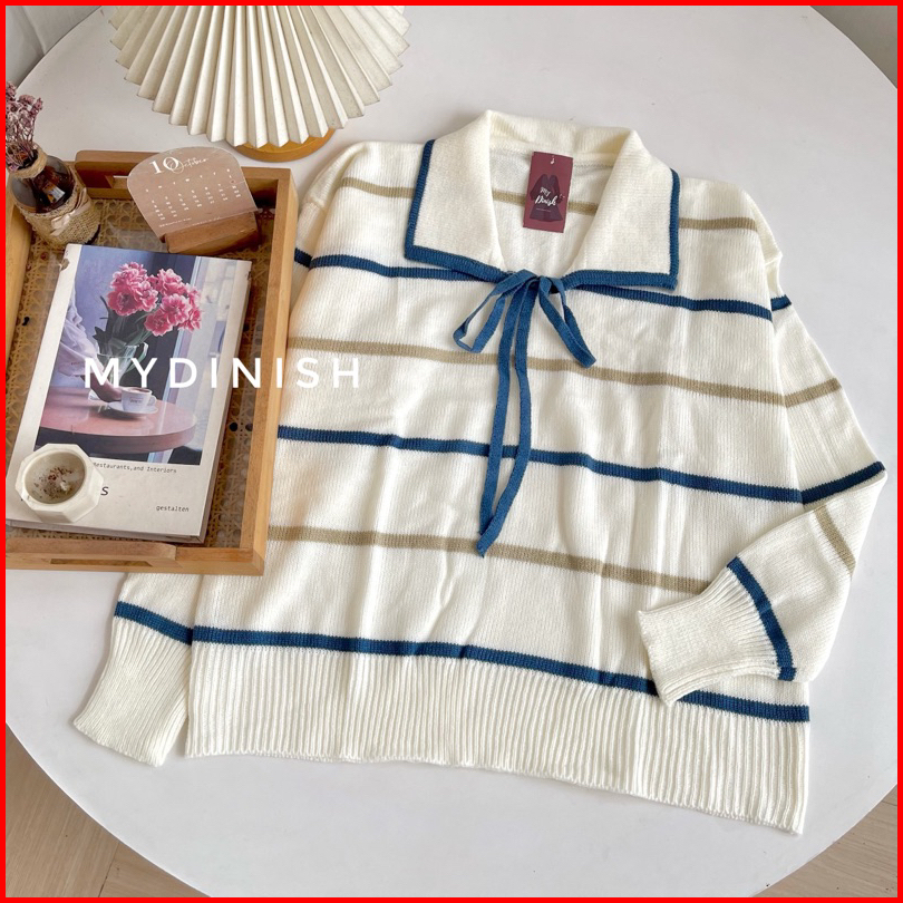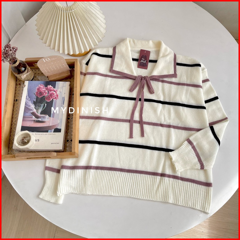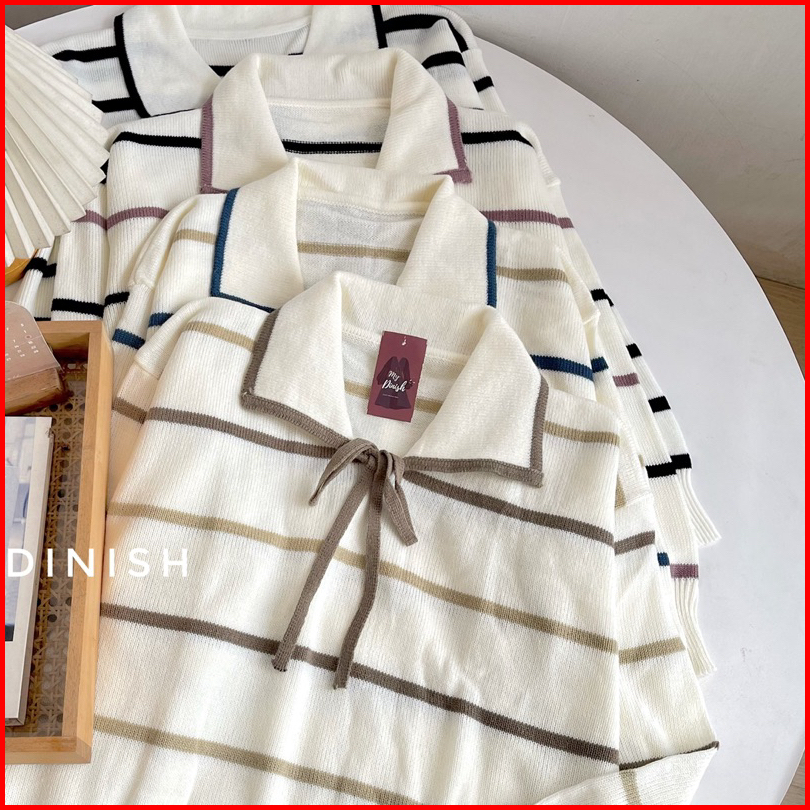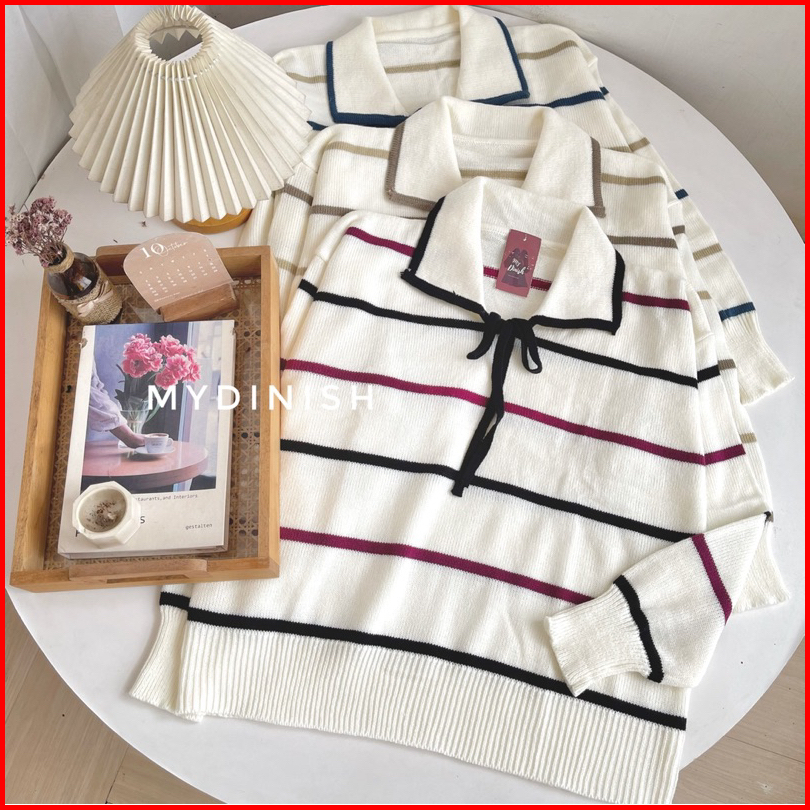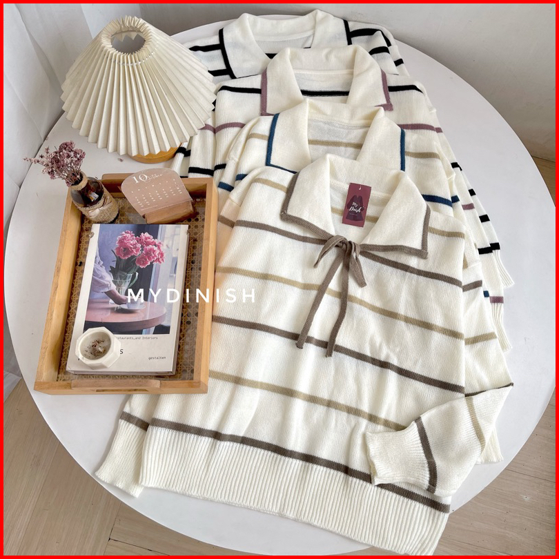 Hesty Polo Blouse - Atasan Blouse Rajut Wanita Motif Garis Korean Style
