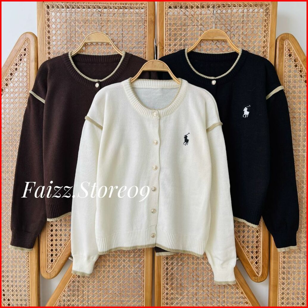 Sabilla Cardy Knit - Atasan Cardigan Rajut Kancing Polo Horse Motif Simple Bahan Lembut Korean Style