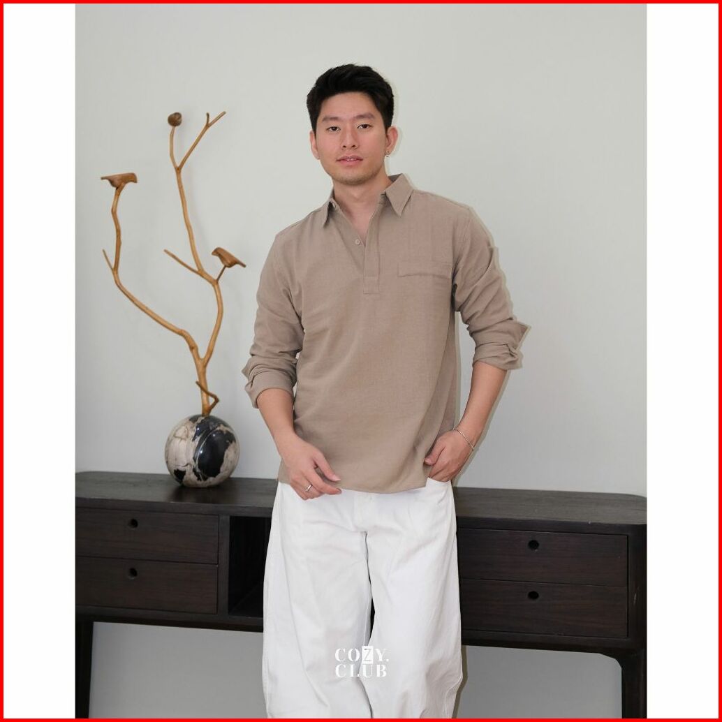 Cozyclub Linen Longsleeve Polo Kaos Kerah Pria Linen Lengan Panjang 191