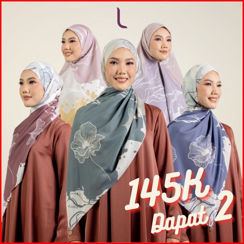 Elzatta Hijab Jilbab Segiempat Scarf Premmium Obelia Abstract Floral