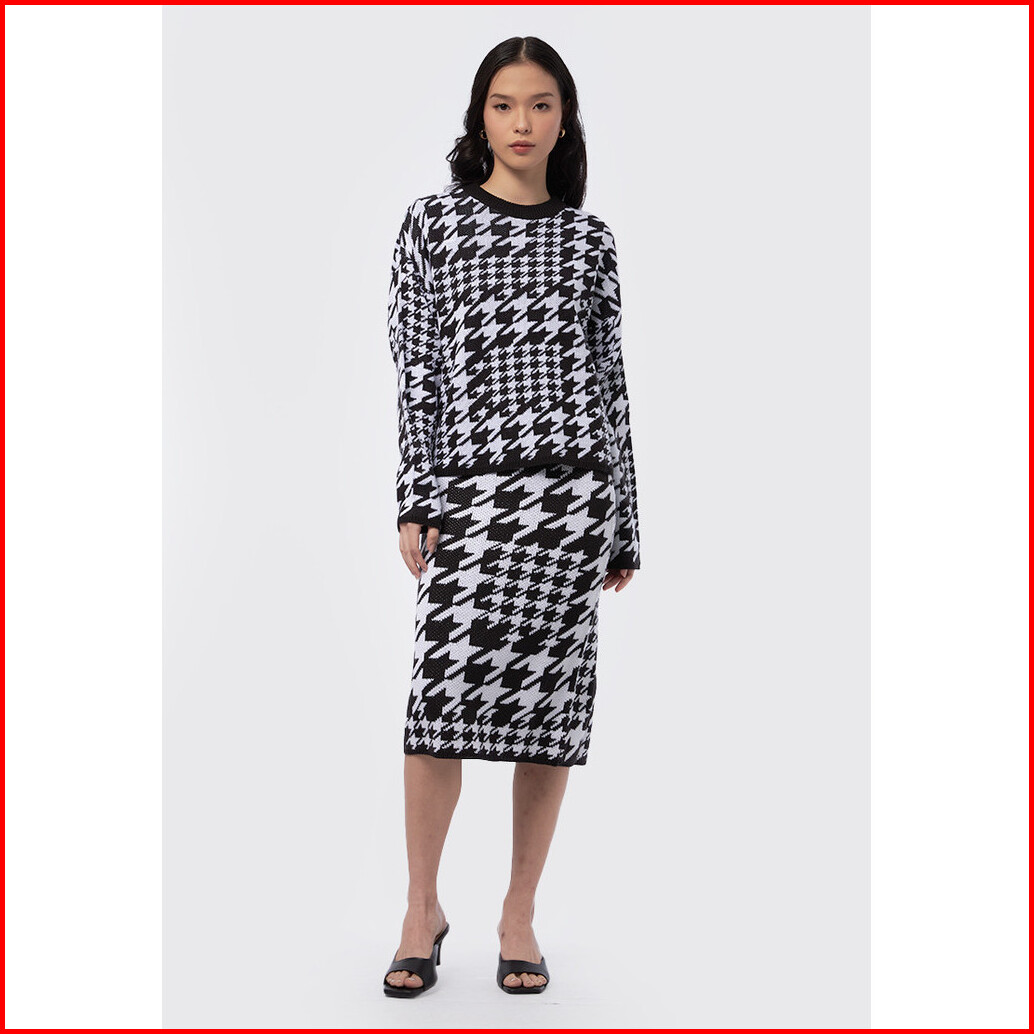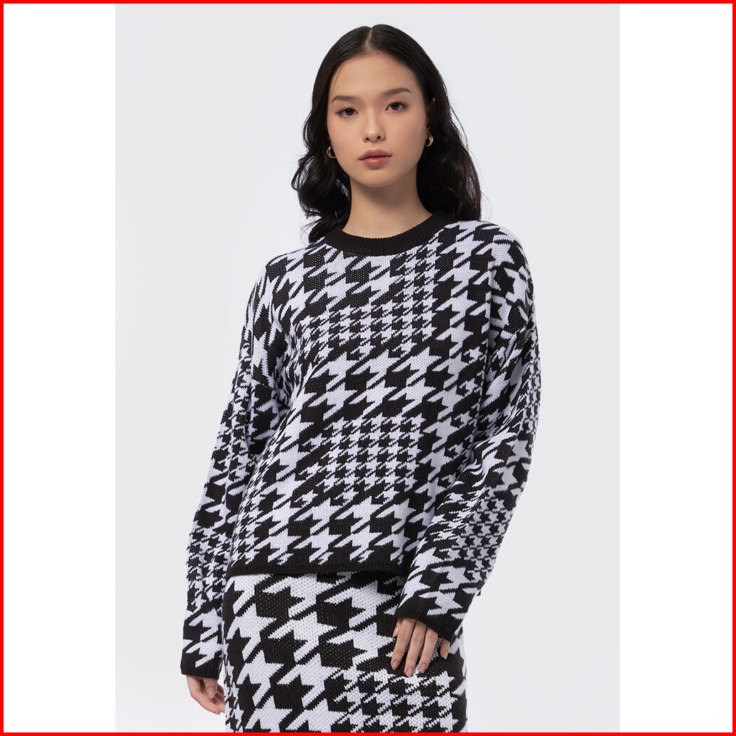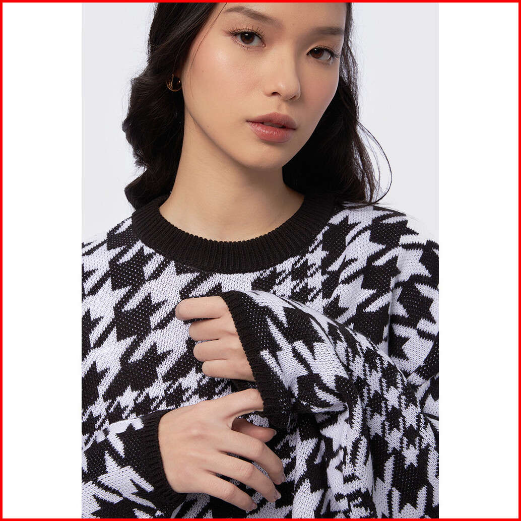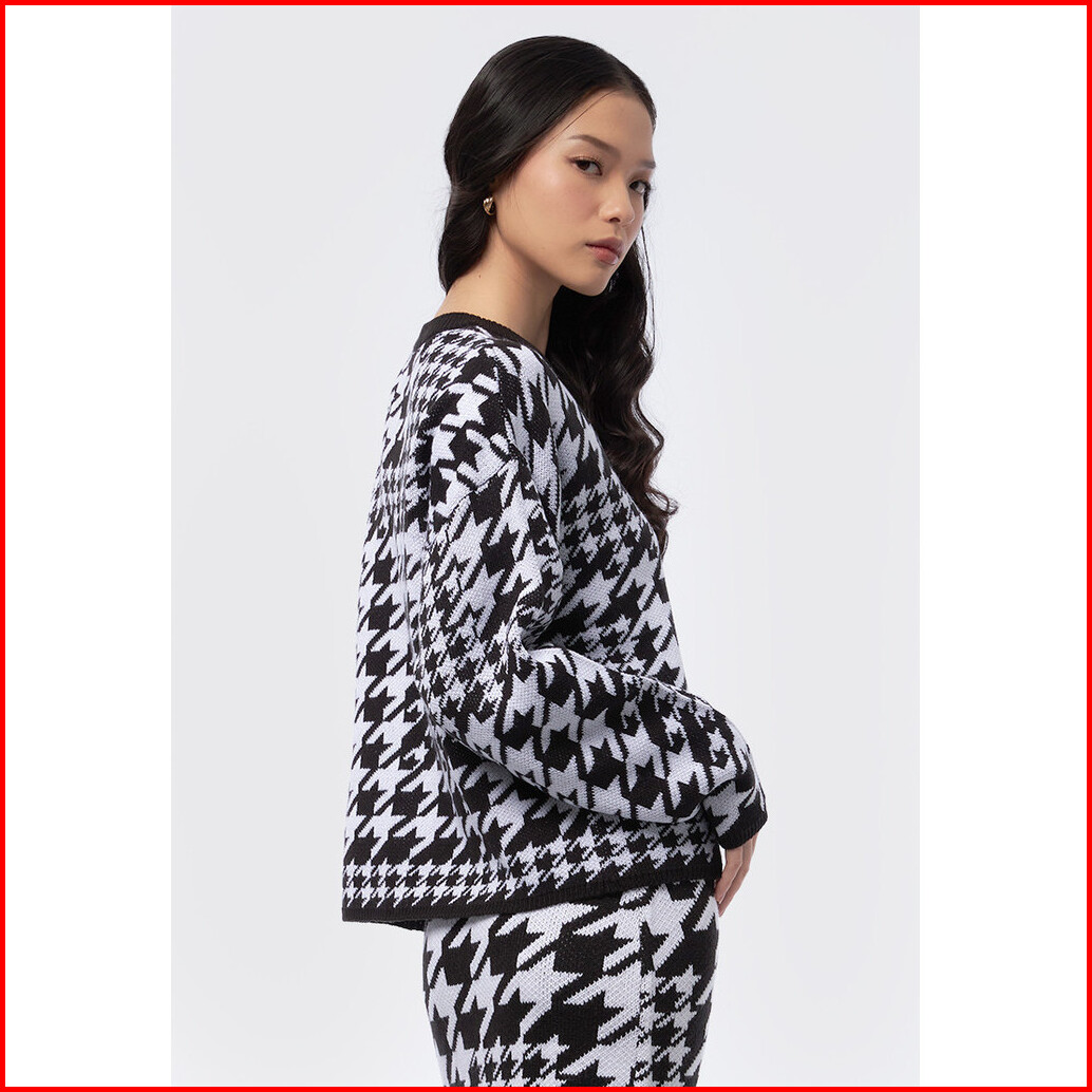 Executive Monochrome Long Sleeve Knit Sweater Black