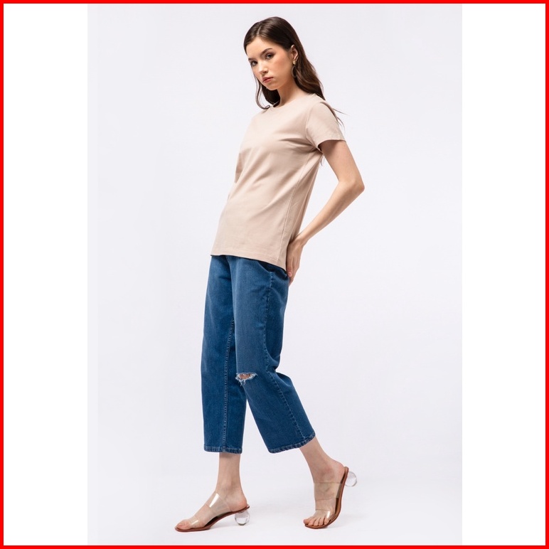 Executive Basic Round Neck Cotton T-shirt Wheat