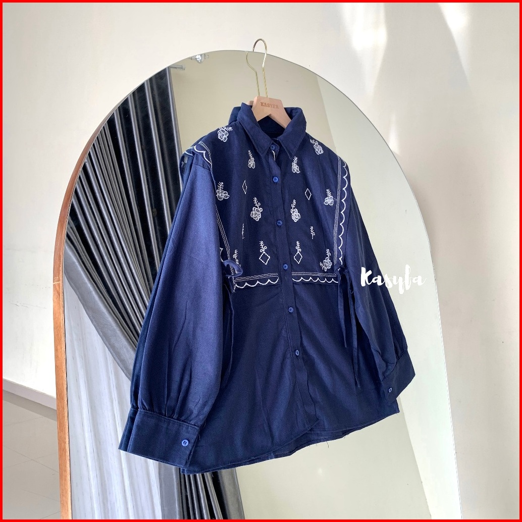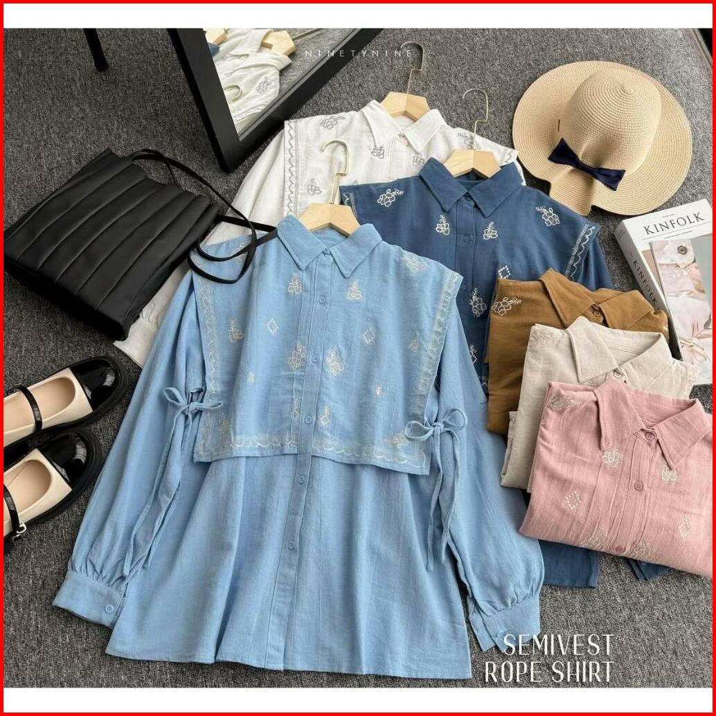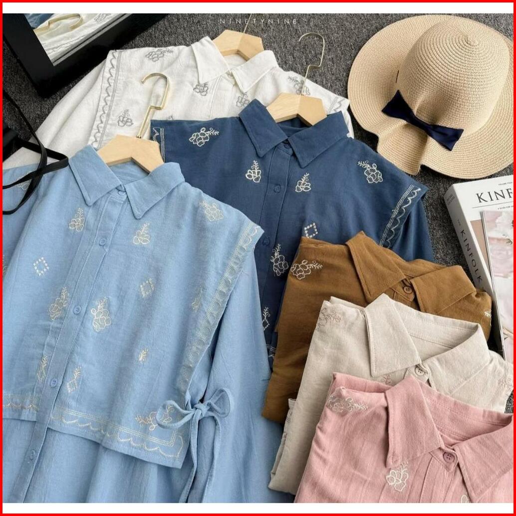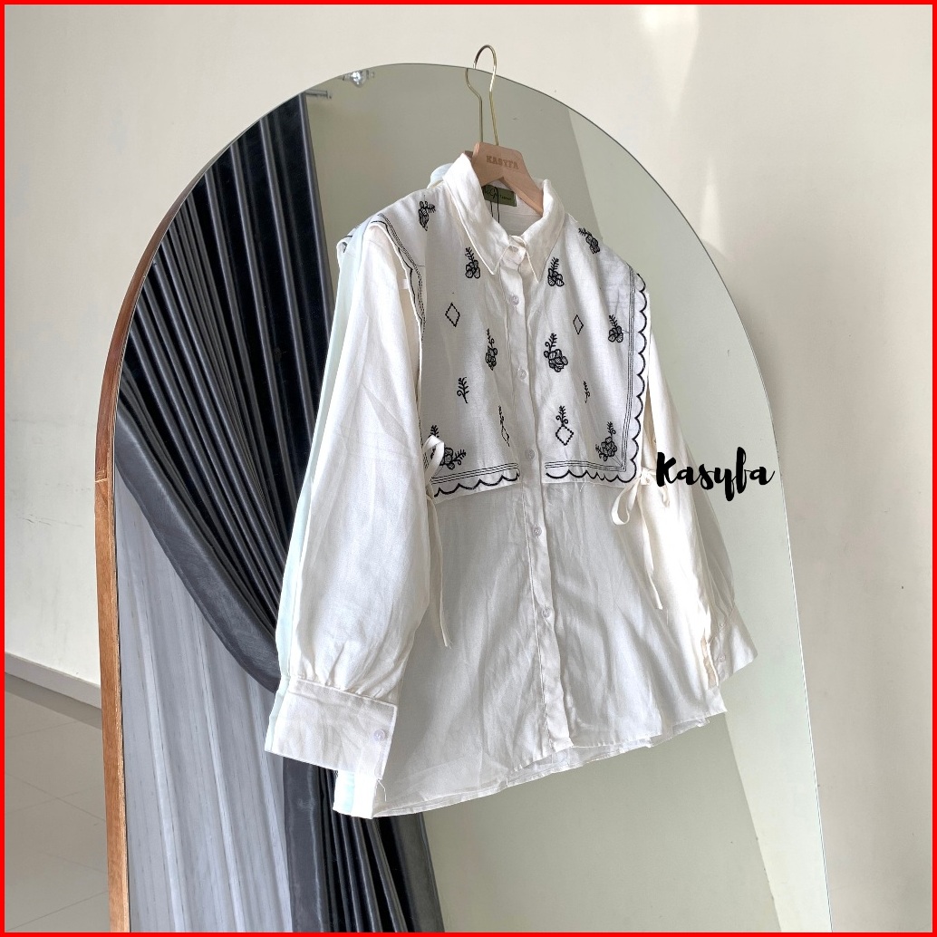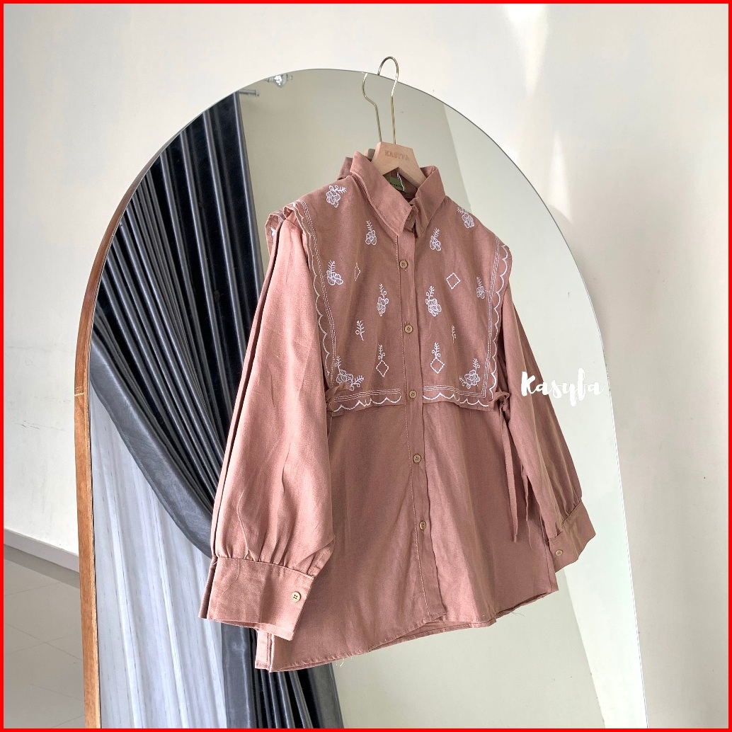 Anala Atasan Kemeja Vest Linen Variasi Bordir Wanita