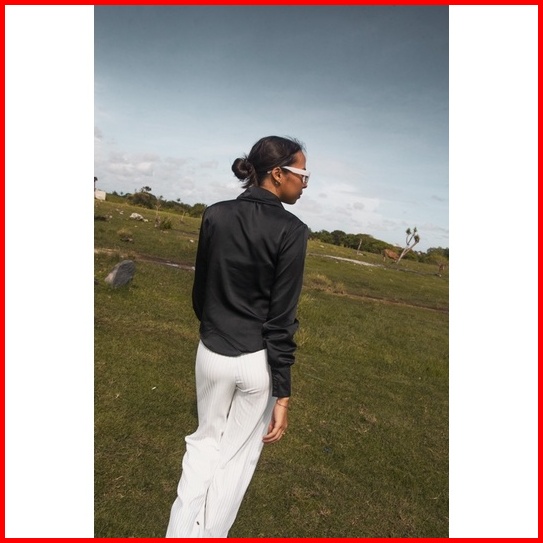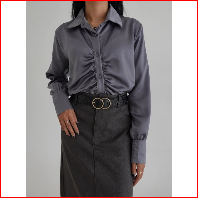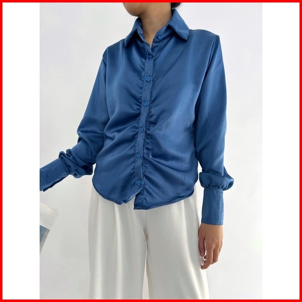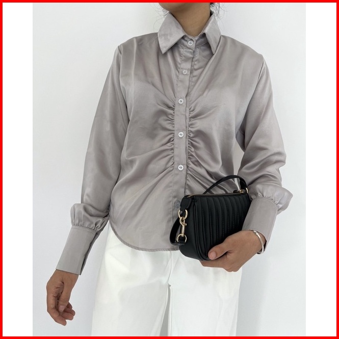 Ruched Top Atasan Satin Menerawang S-xxl