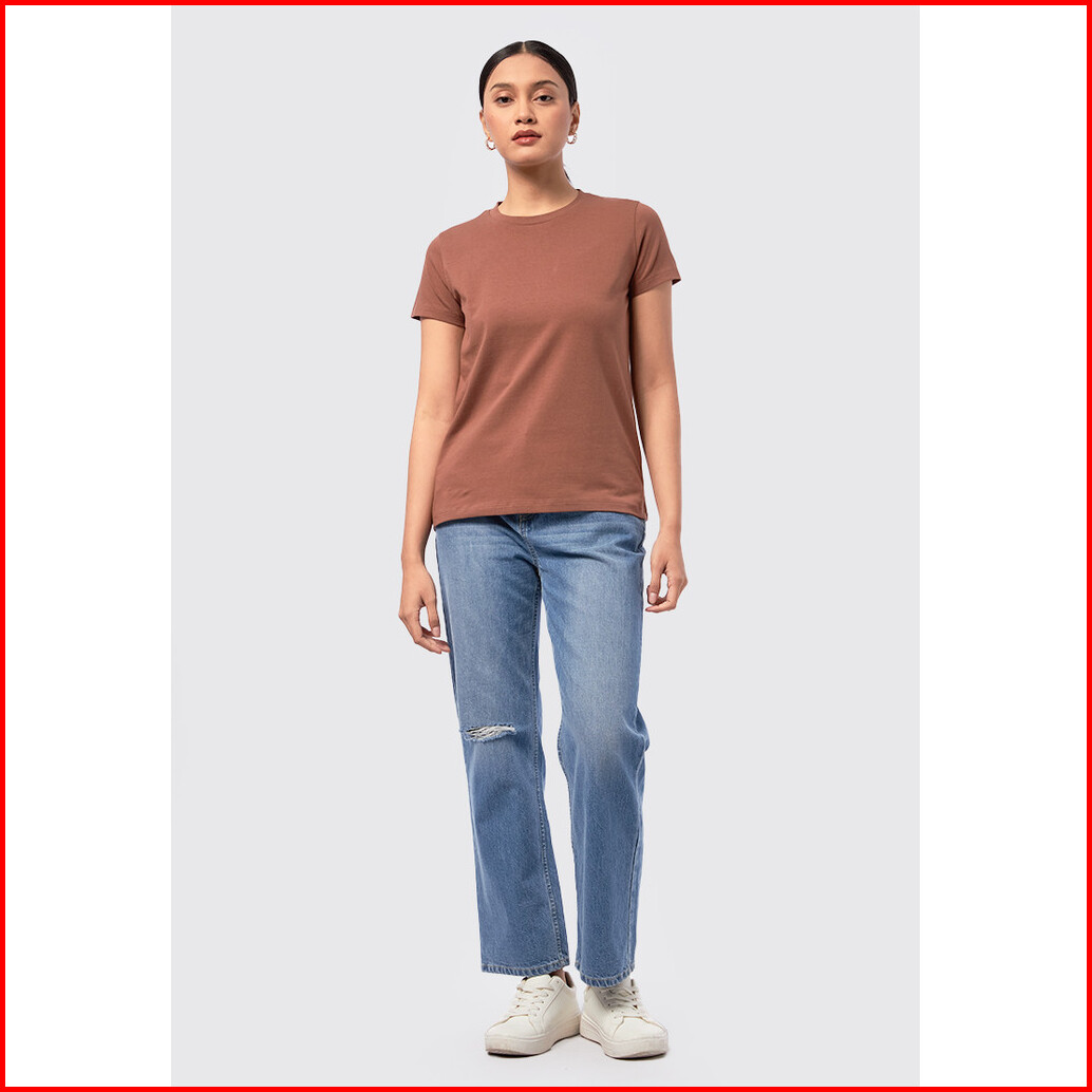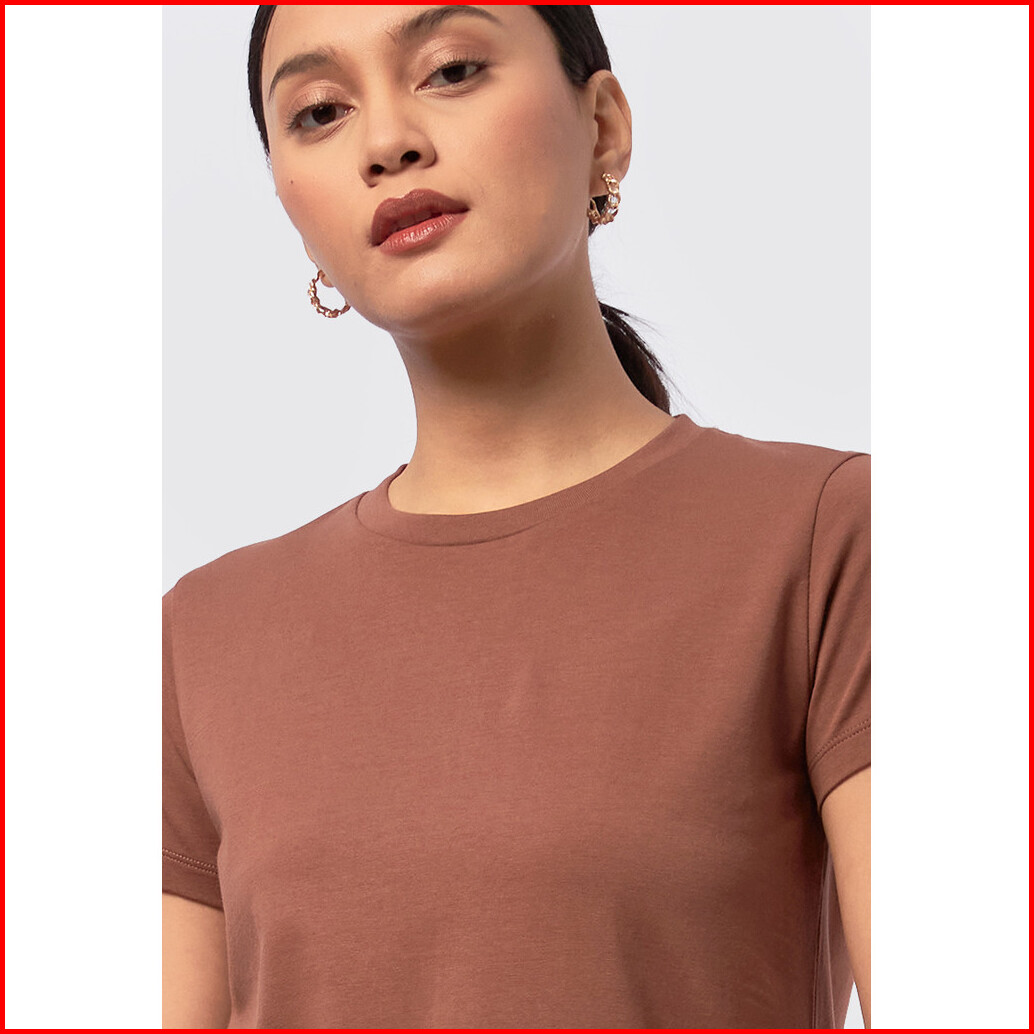 Executive Basic Round Neck Cotton T-shirt Dark Brown