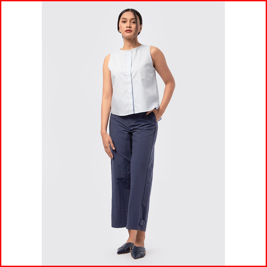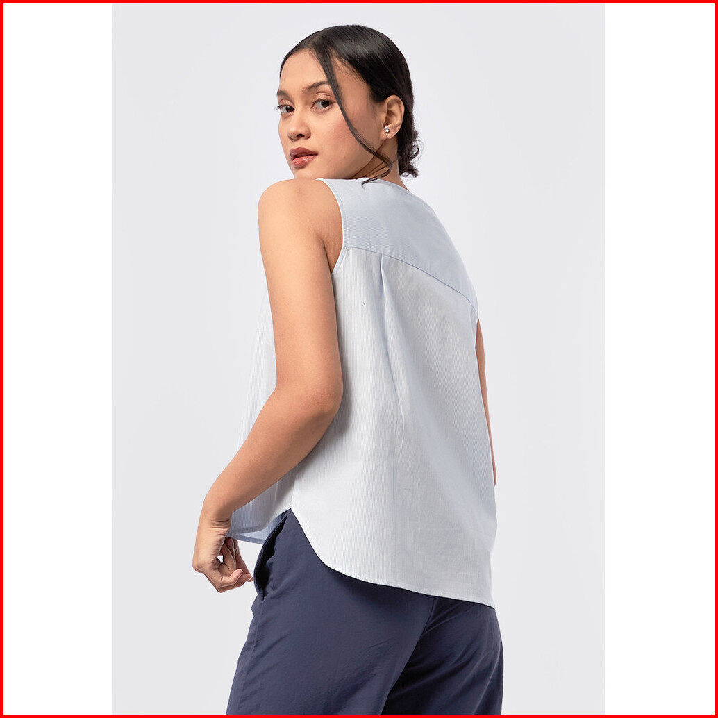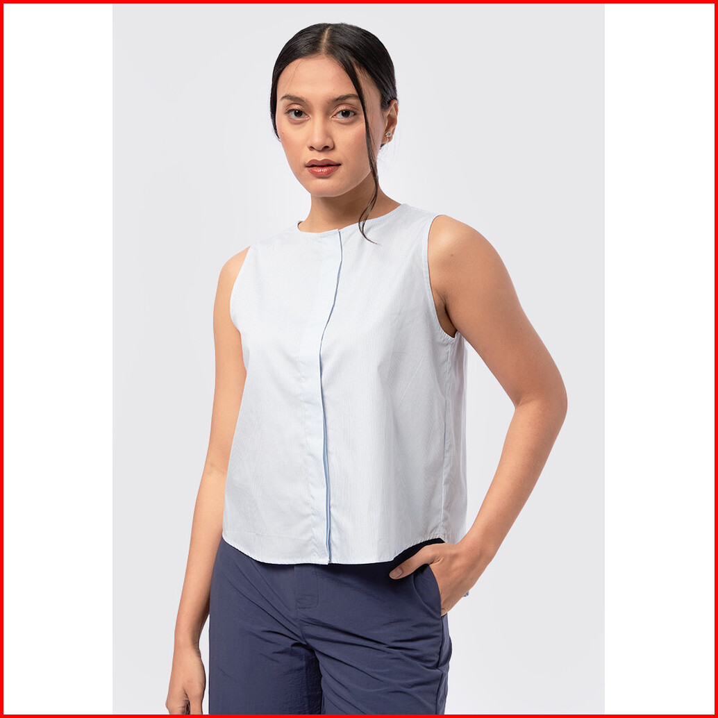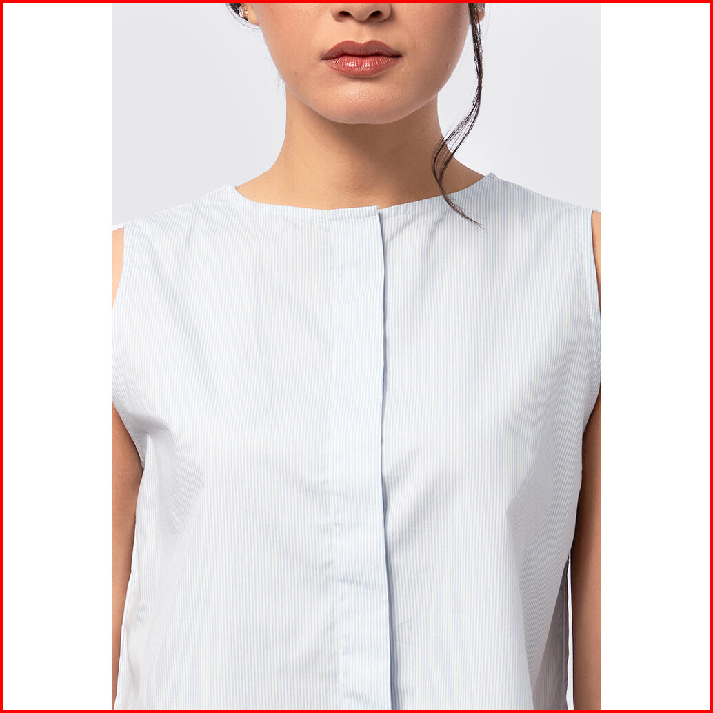 Executive Sleeveless Stripes Crop Top Lt. Blue