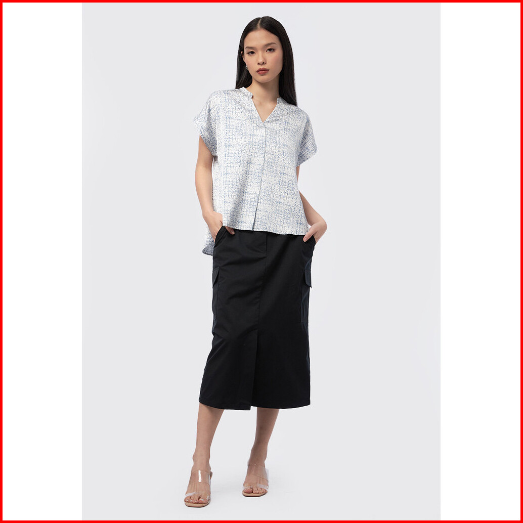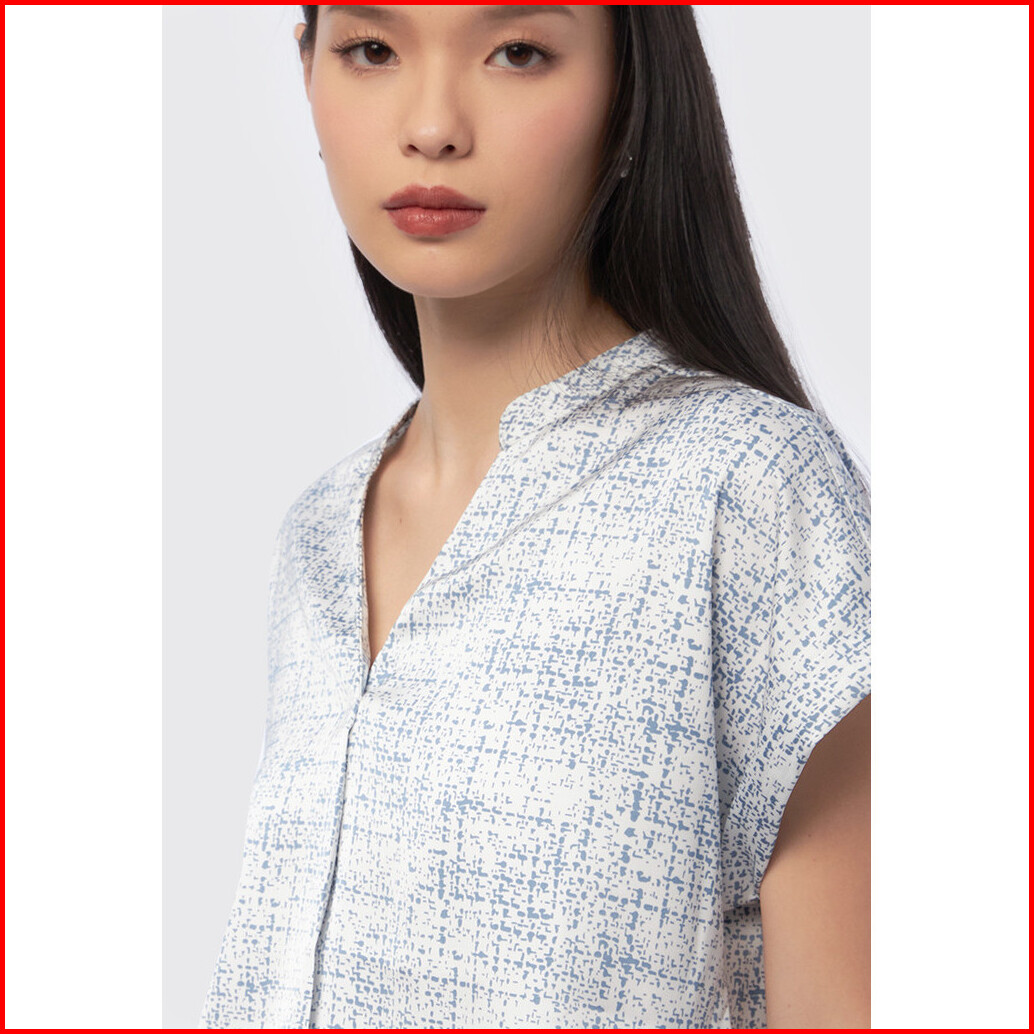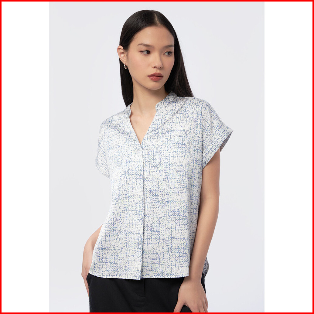Executive Printed Short Sleeve V-neck Blouse Navy
