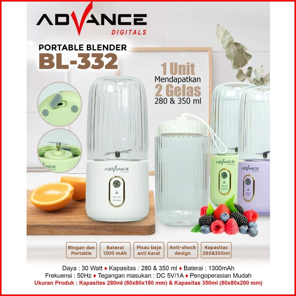 Advance Bl-332 Mini Portable Blender 1300 Mah Free 1 Gelas Lagi 350ml Garansi Resmi 1 Tahun