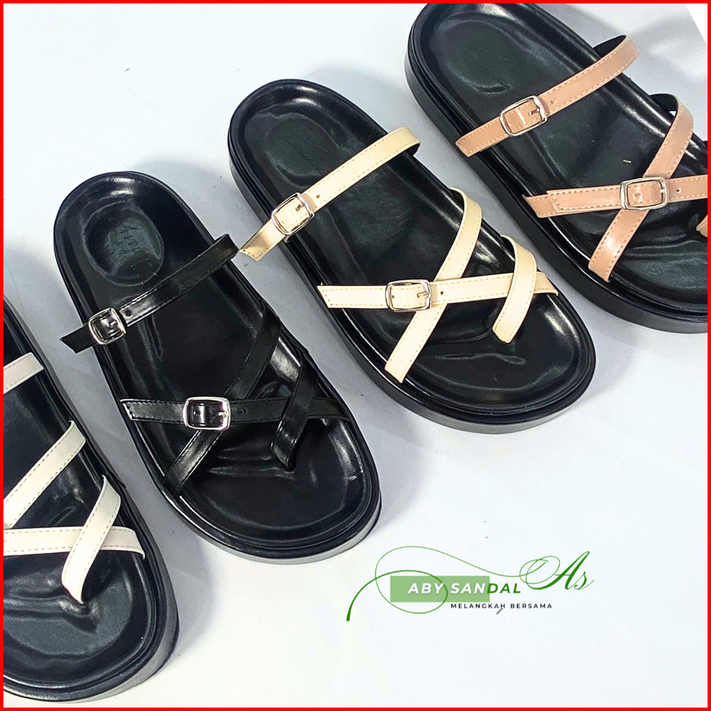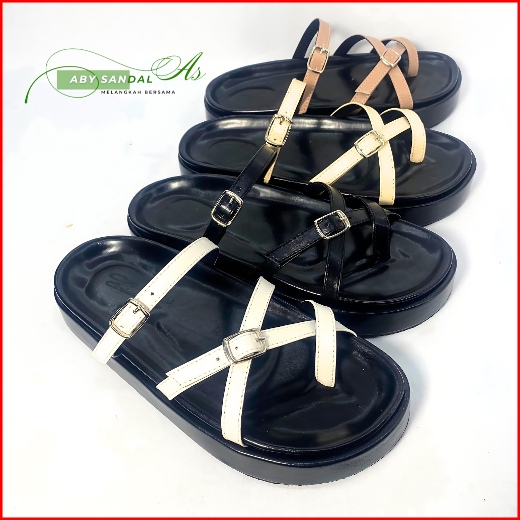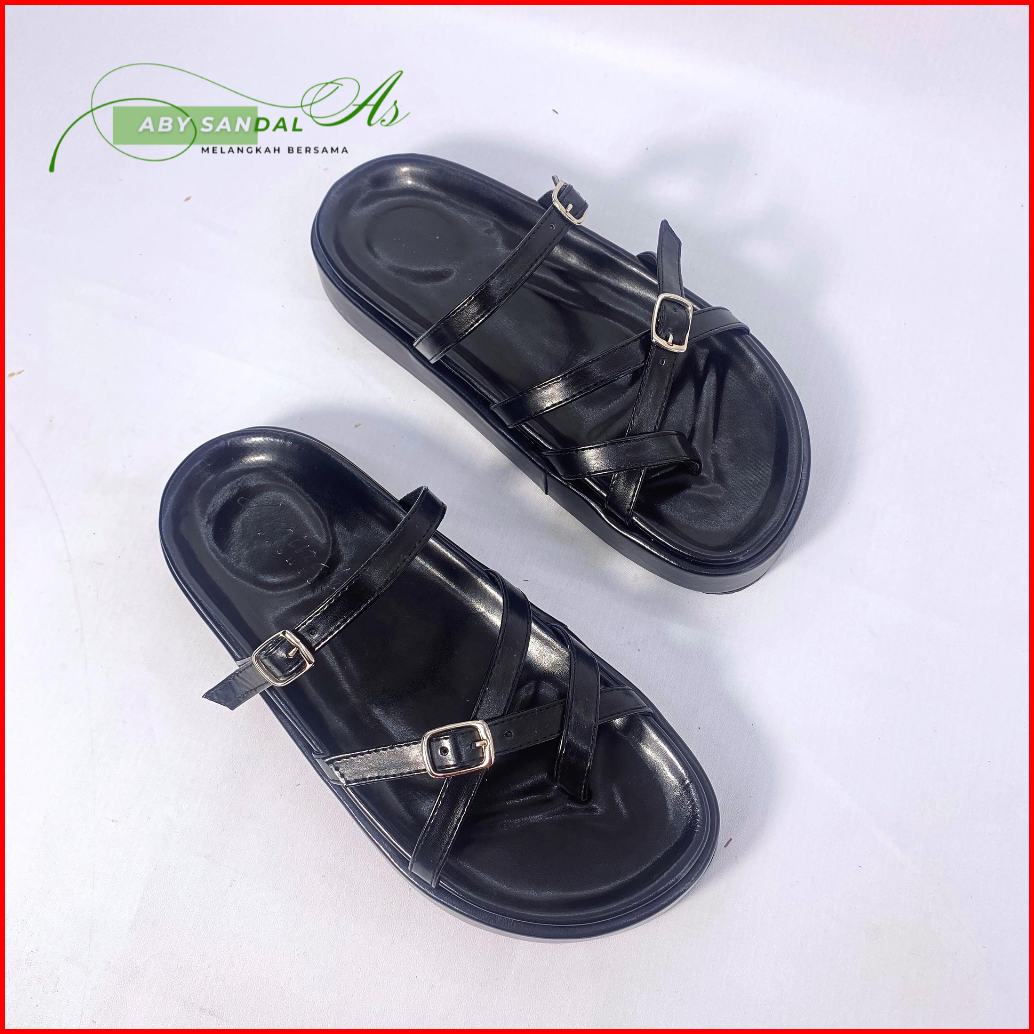 Aby Sandal Wanita Platform Anti Selip Cocok Untuk Semua Musim Bahan Sintetis Gesper Kekinian