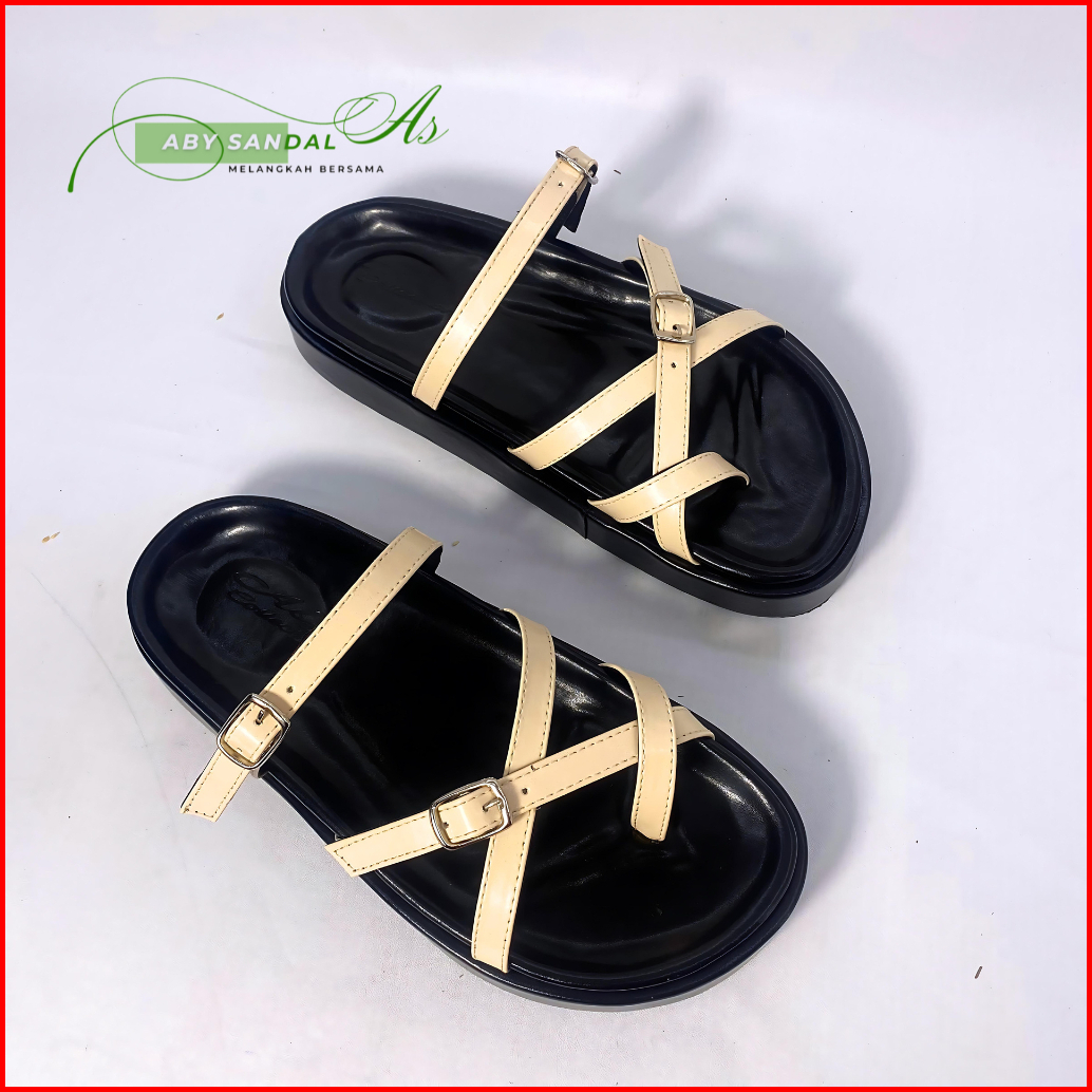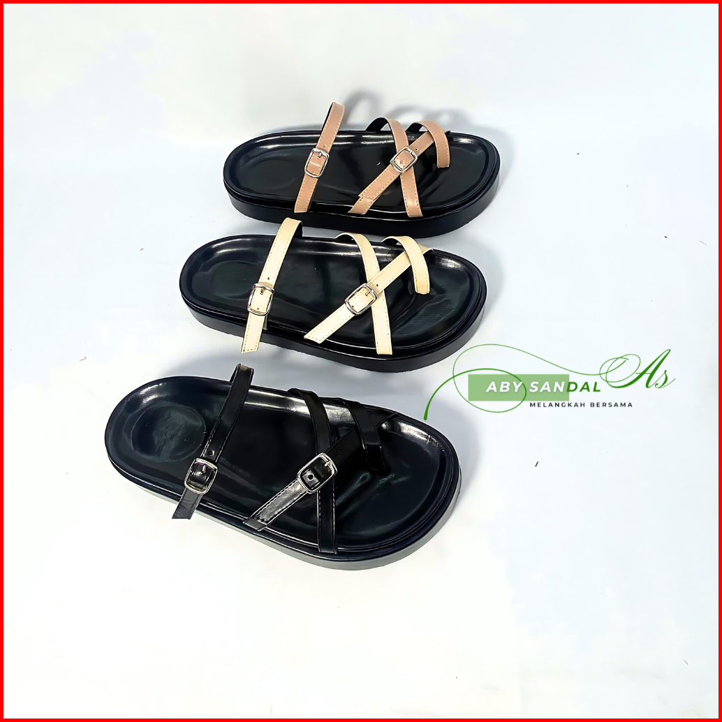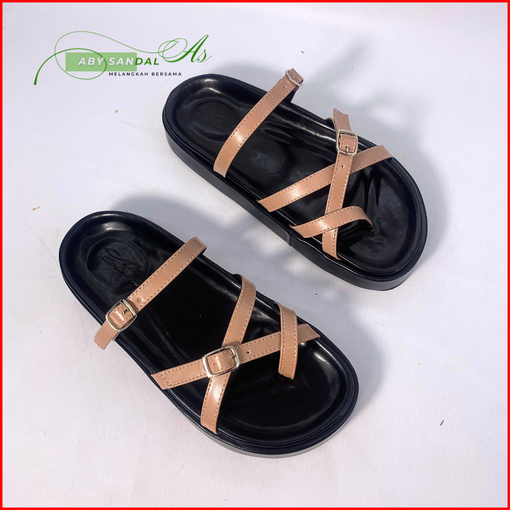 Aby Sandal Wanita Platform Anti Selip Cocok Untuk Semua Musim Bahan Sintetis Gesper Kekinian