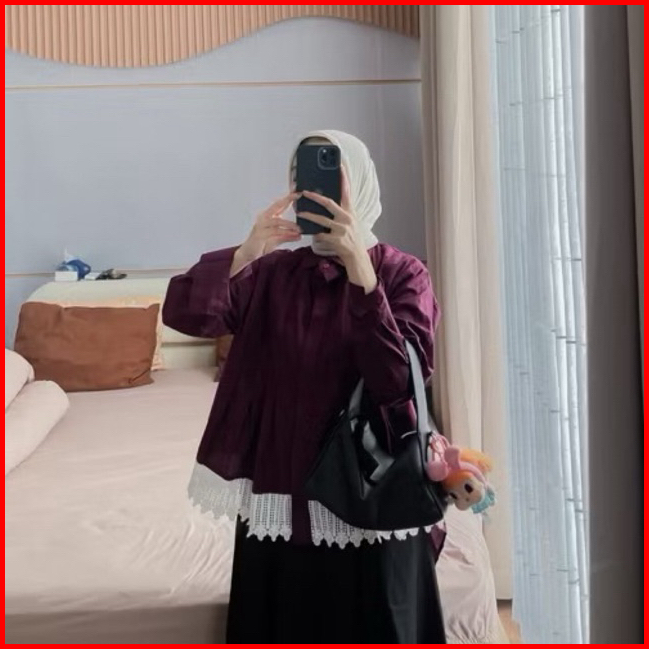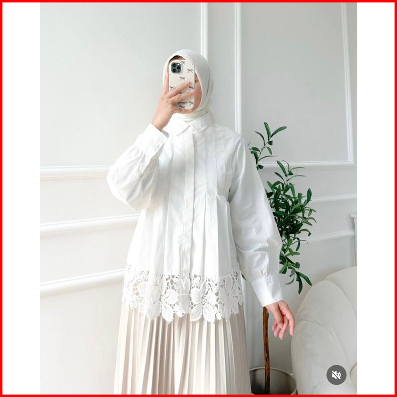 Jema Basic - Atasan Blouse Wanita - Kemeja Basic Renda - Kemeja Putih By Nazira
