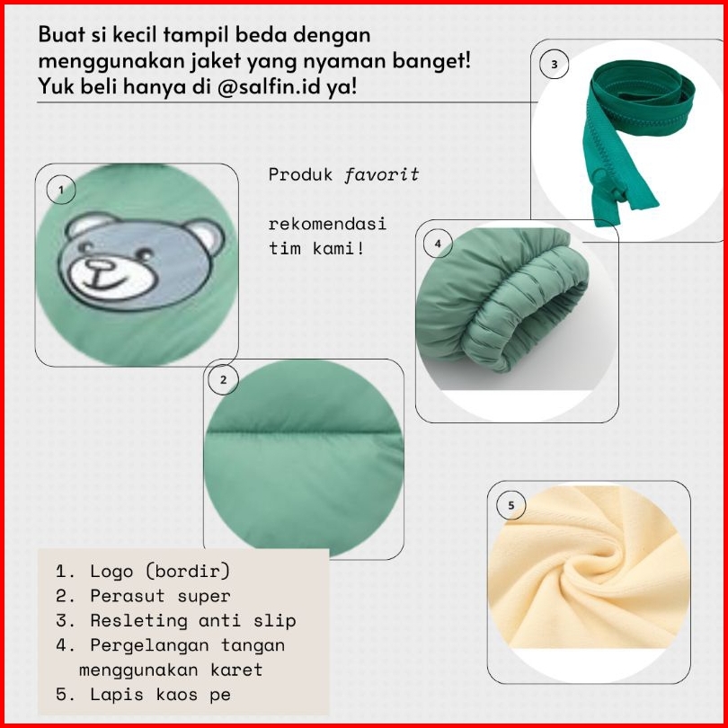 Kafabih Jaket Anak Perempuan Anak Laki Laki Winter Warna Hijau Tosca Pink Kuning Hitam Merah Usia 1-12 Tahun