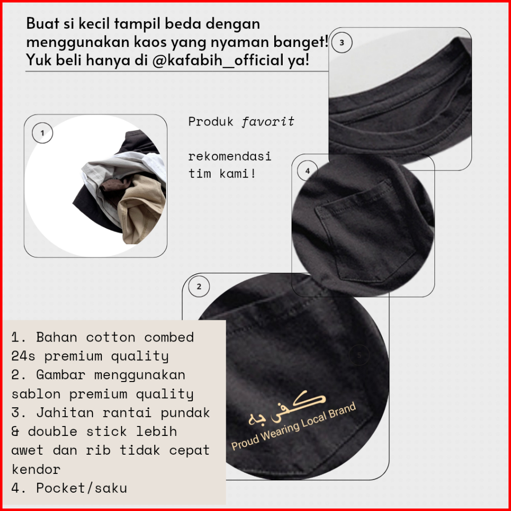 Kafabih Kaos Anak Unisex Pocket Cotton Combed 24s
