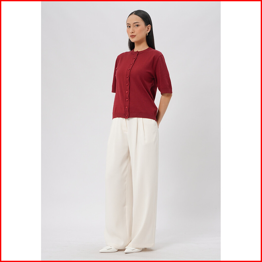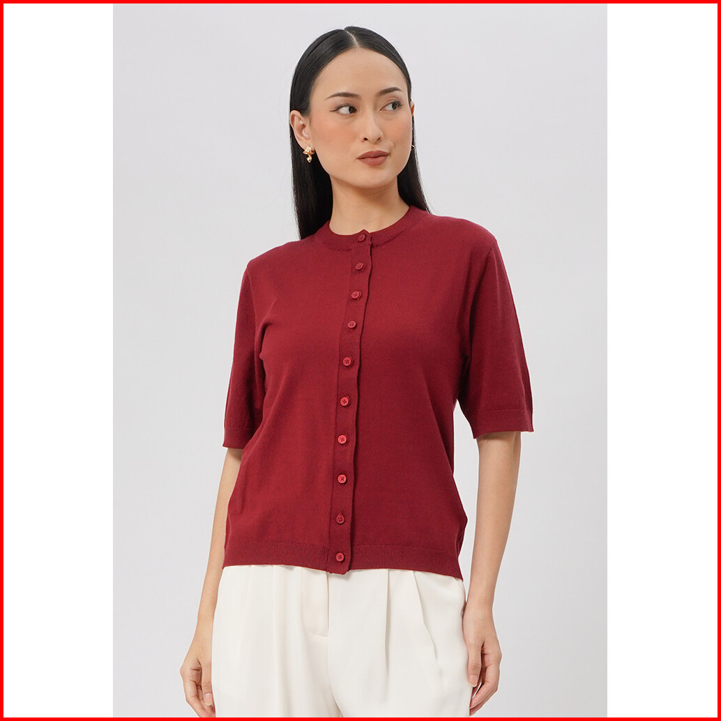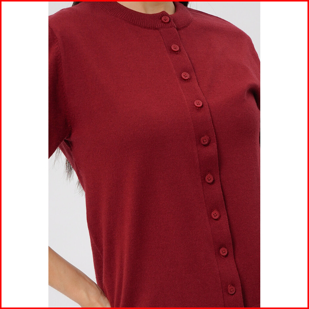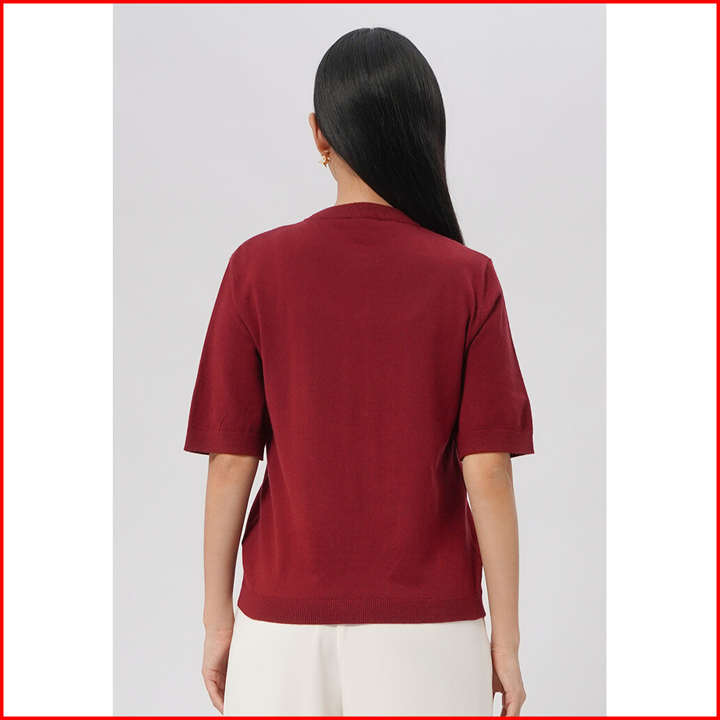 Executive Round Neck Short Sleeve Knit Top Dark Red