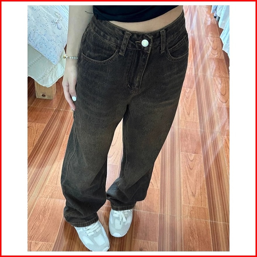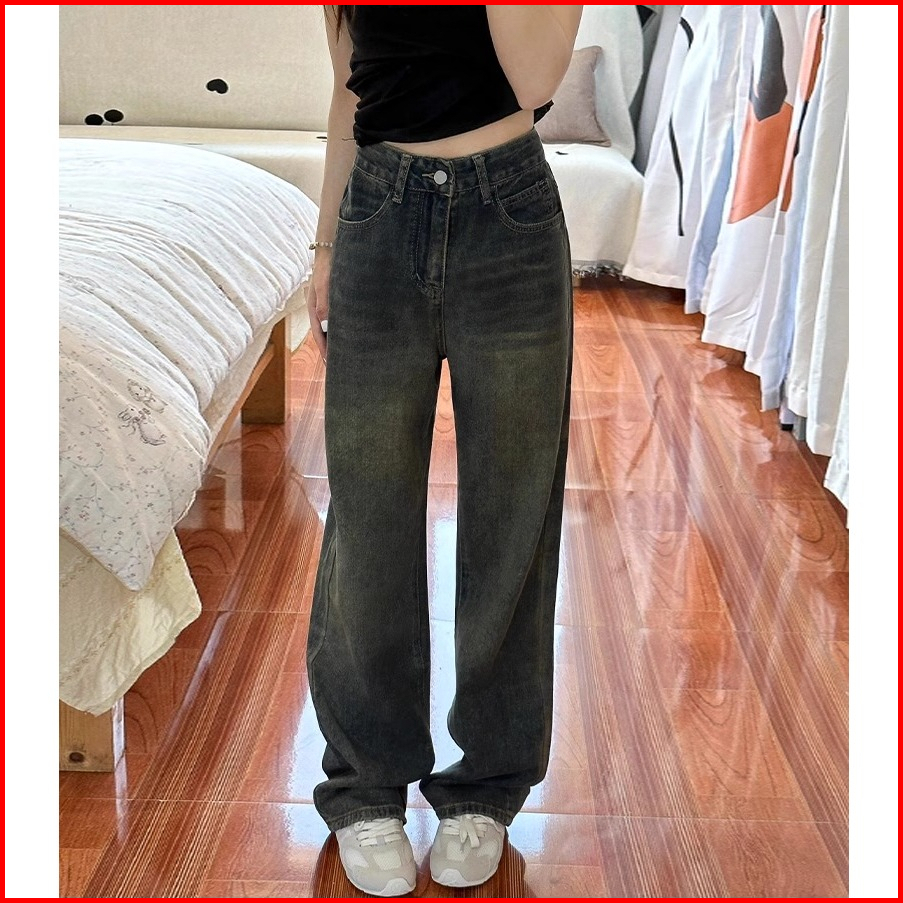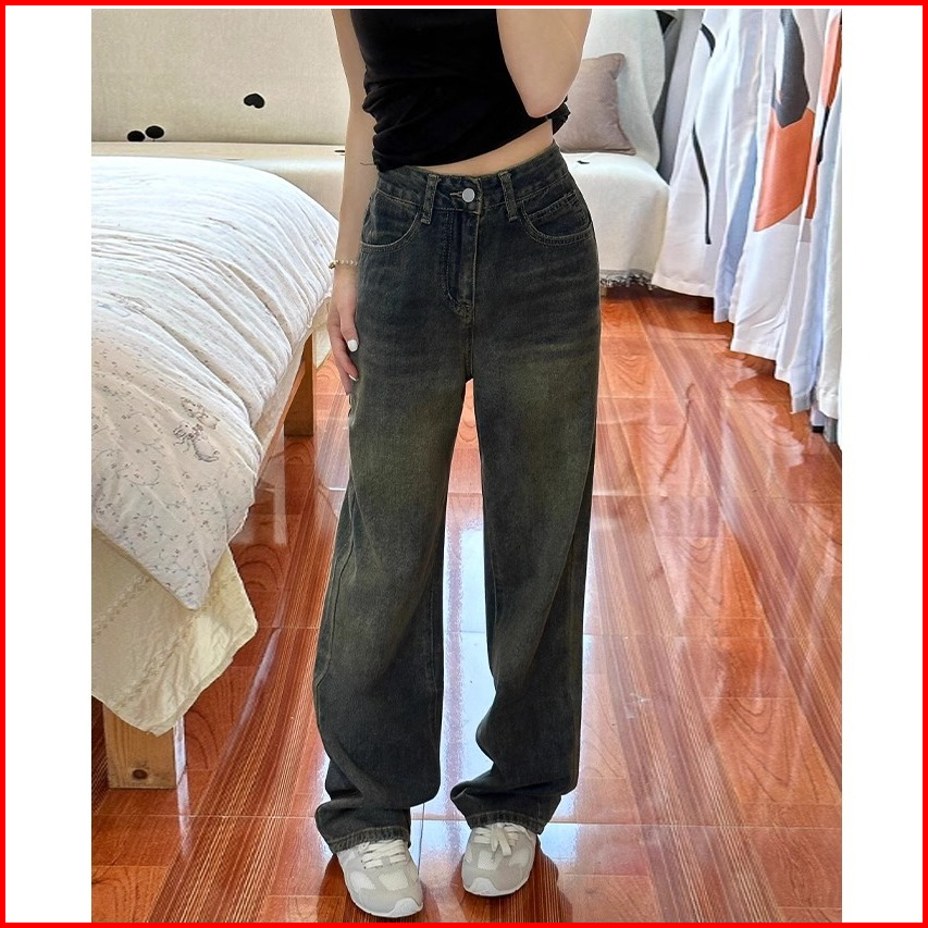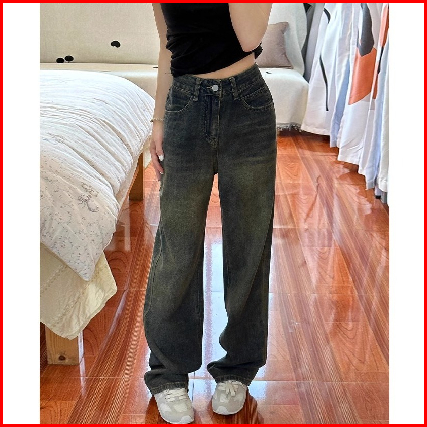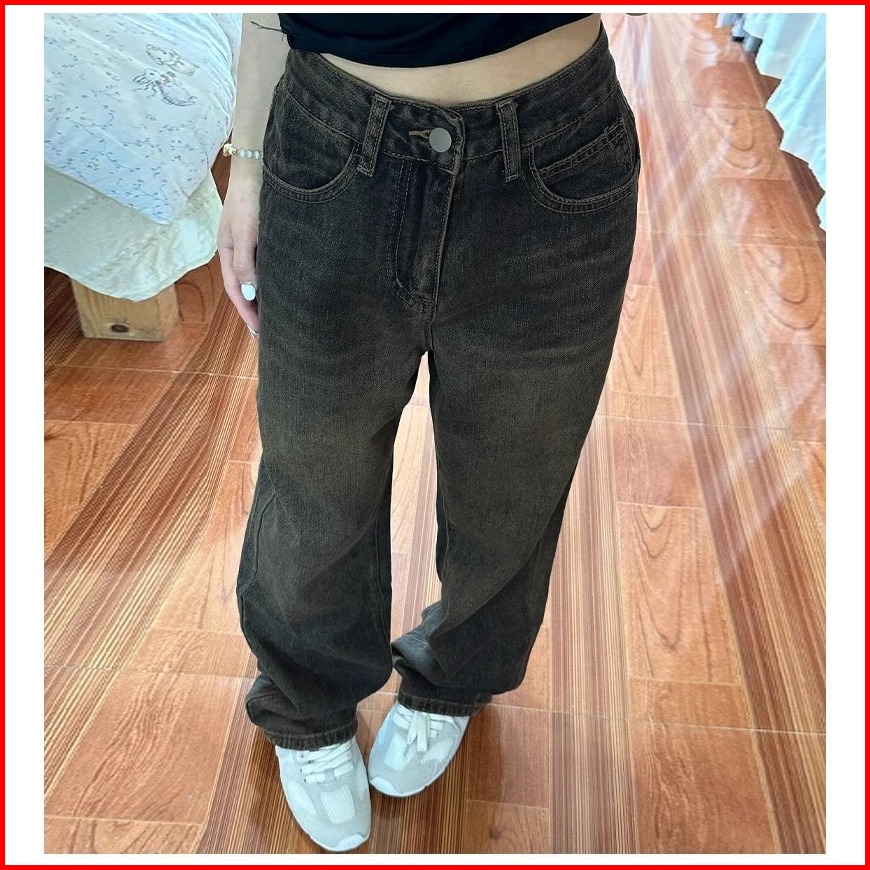New Retro Abu-abu Kulot Jeans Wanita Korean Style Highwaist Celana Baggy Pants Wanita