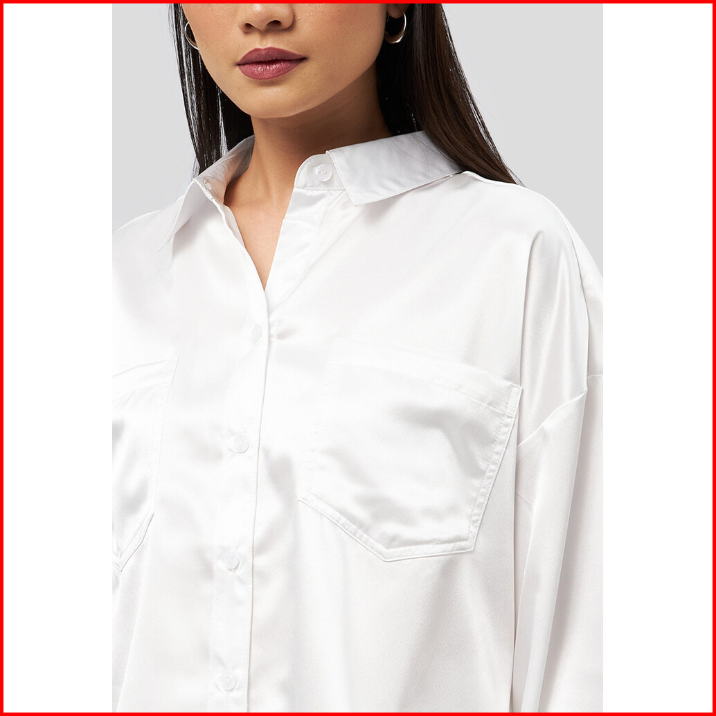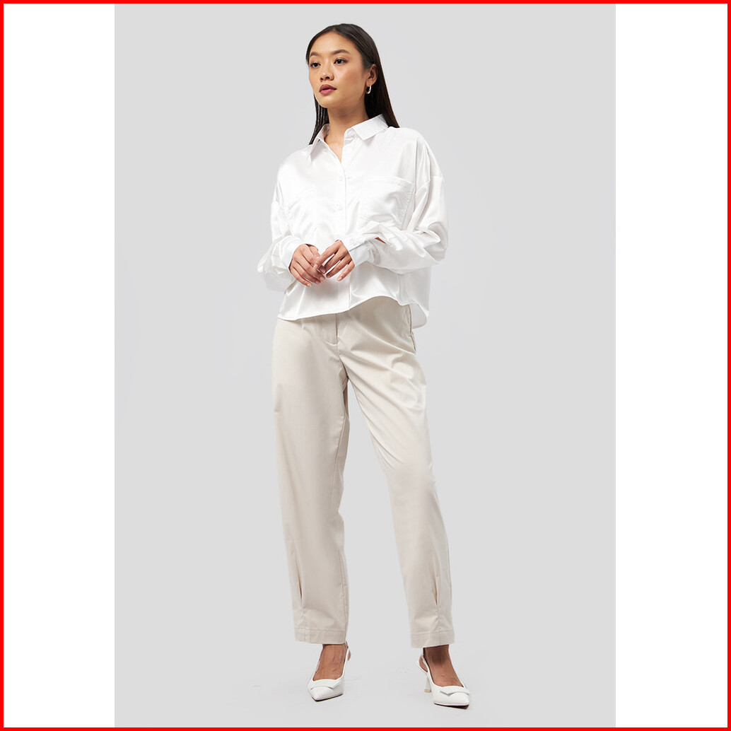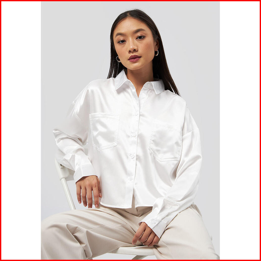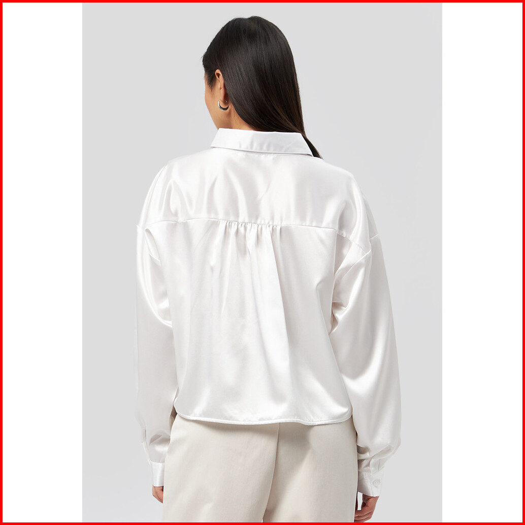 Executive Long Sleeve Satin Crop Shirt Off White