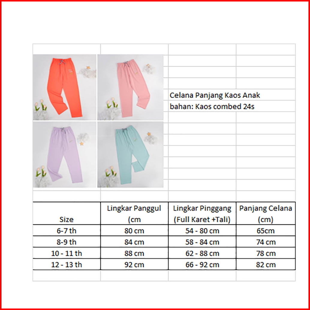 Celana Panjang Kaos Anak Perempuan Remaja Cewek Tanggung 6 8 10 12 Tahun