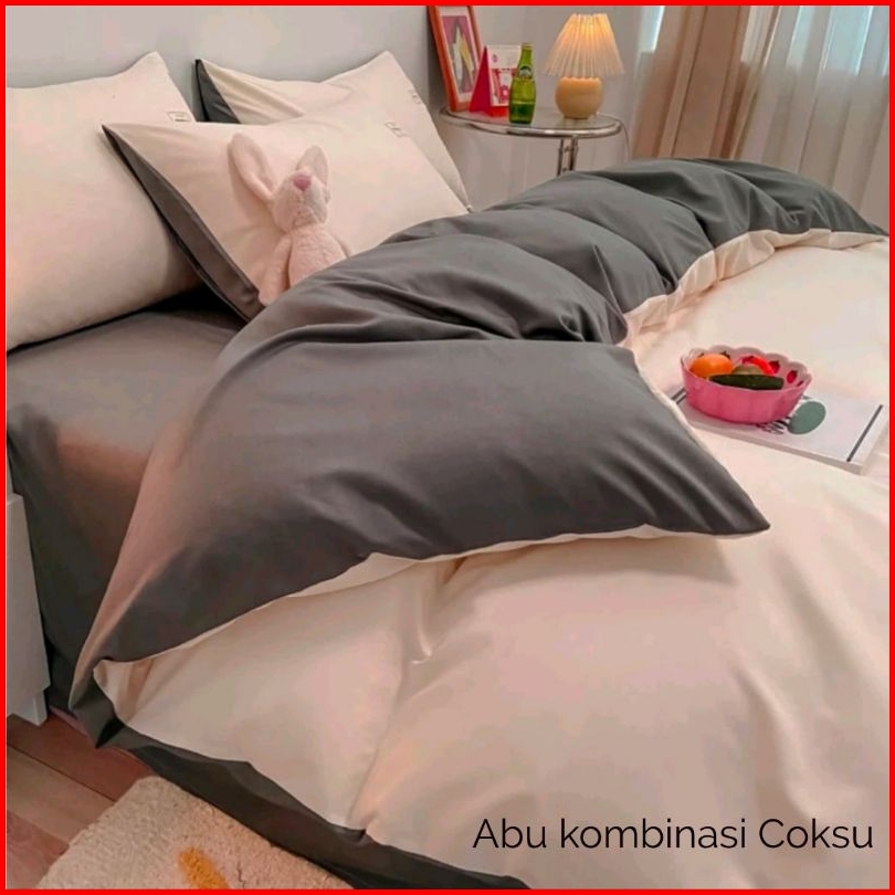 Bedcover Set Two Tone 160x200 180x200 200x200 Motif Aesthetic Minimalis