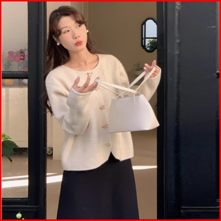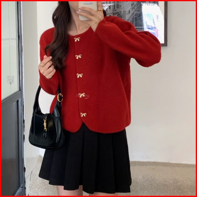 Ajw Cardigan Rajut Wanita Belah Oval Kancing Pita Lengan Panjang Knit Premium Wbd Cardigan Wanita Kancing Pita Oval Bela