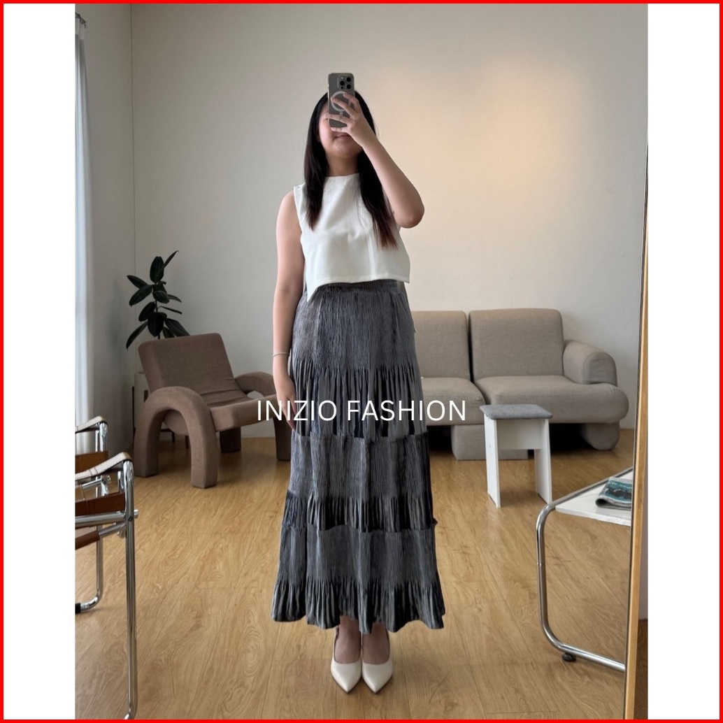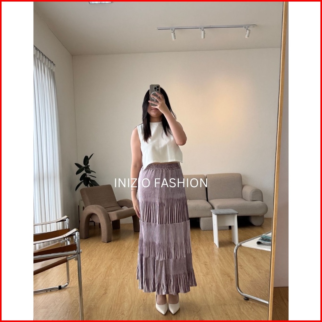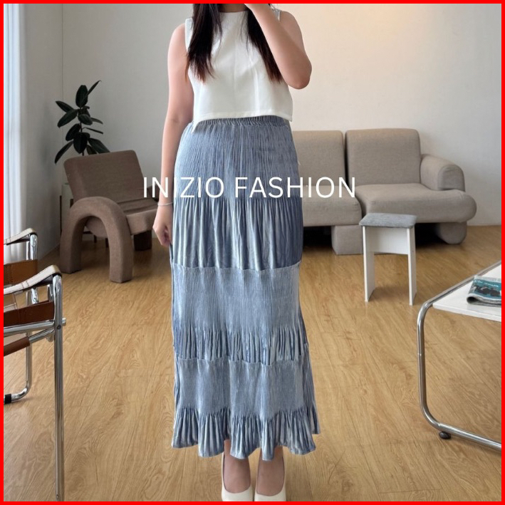 Rok Susun 3 Plisket Bludru Premium Panjang Wanita