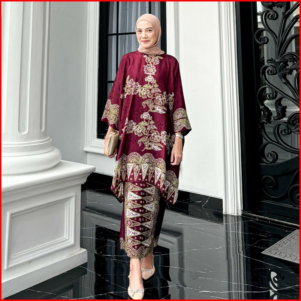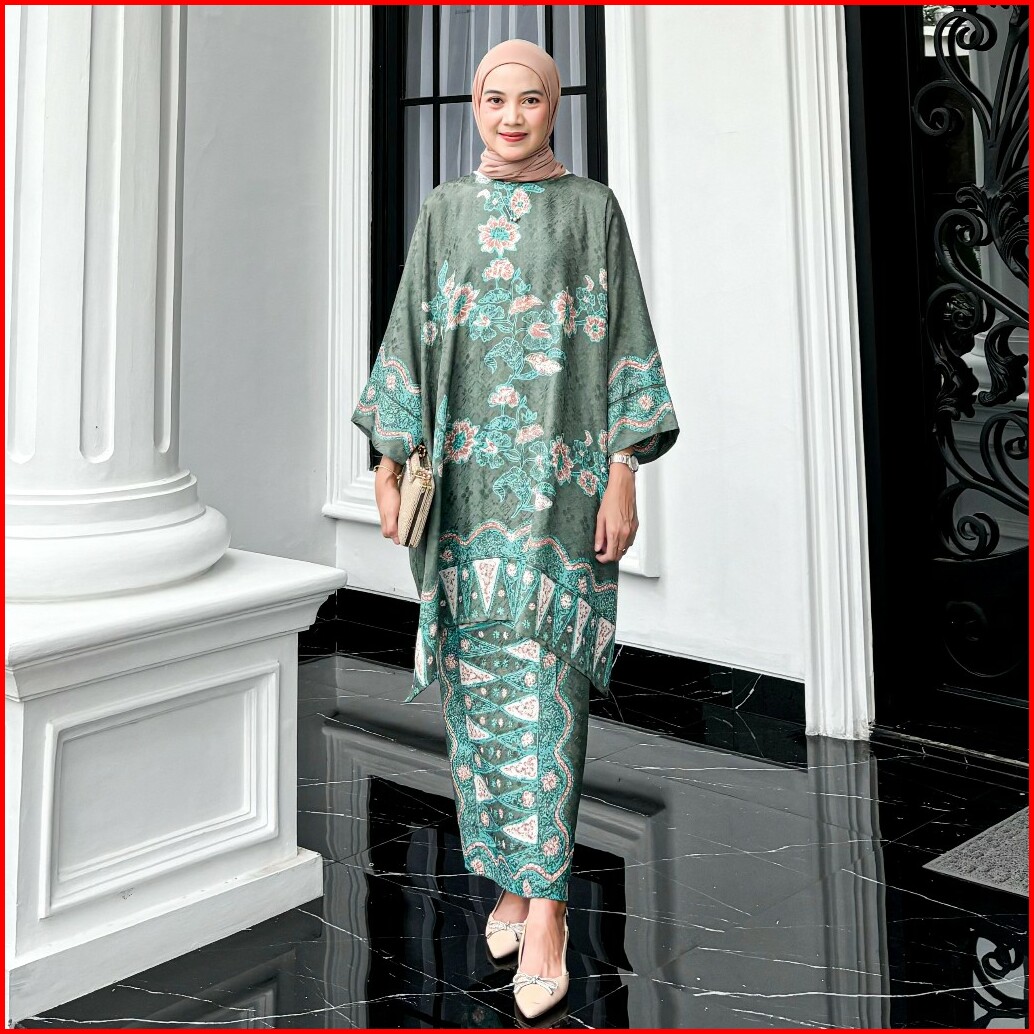 Lily Set Blouse Dan Rok Batik Modern Viscose Baju Kurung Raya Collections