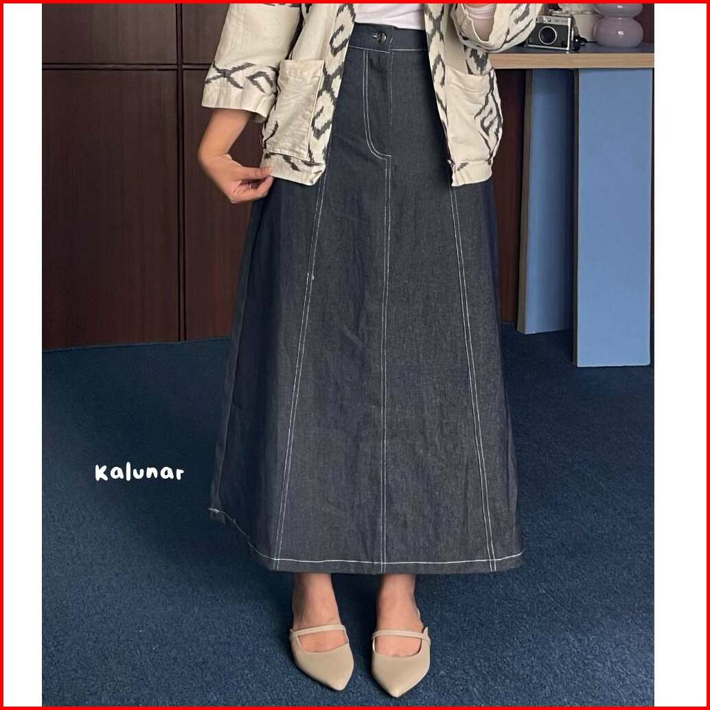 Kalunar - Meri Skirt Rok Highwaist Katun Denim Jeans Wanita
